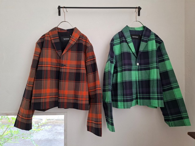 quality :wool 53% cotton 32% linen 15% (lining polyester 65% cotton 35%) color :green CHK brown CHK size :free (着丈 54.5㎝ 身幅 52.5㎝ 肩幅 43㎝ 袖丈 58㎝ アームホール 54㎝ 袖口幅 15.5㎝ 裾幅 51㎝ ) ¥50,600税込 ⇒ ¥35,420税込 30%OFF オリジナルで製作されたチェック柄生地の ショールカラージャケット。 生地はたてにウール糸、よこに綿麻混紡糸を使用し、 平織りにすることでドライな質感にしています。 仕上げにタンブラー機でもみ洗いをし、 ラフな表情に仕上がっています。 コンパクトな着丈でボリュームのあるスカートや ワンピースとバランスよく着こなせる 一枚です。 長いシーズン楽しんでいただけます。 裏地付きです。 *ドライクリーニング表示です* (着画身長151㎝)