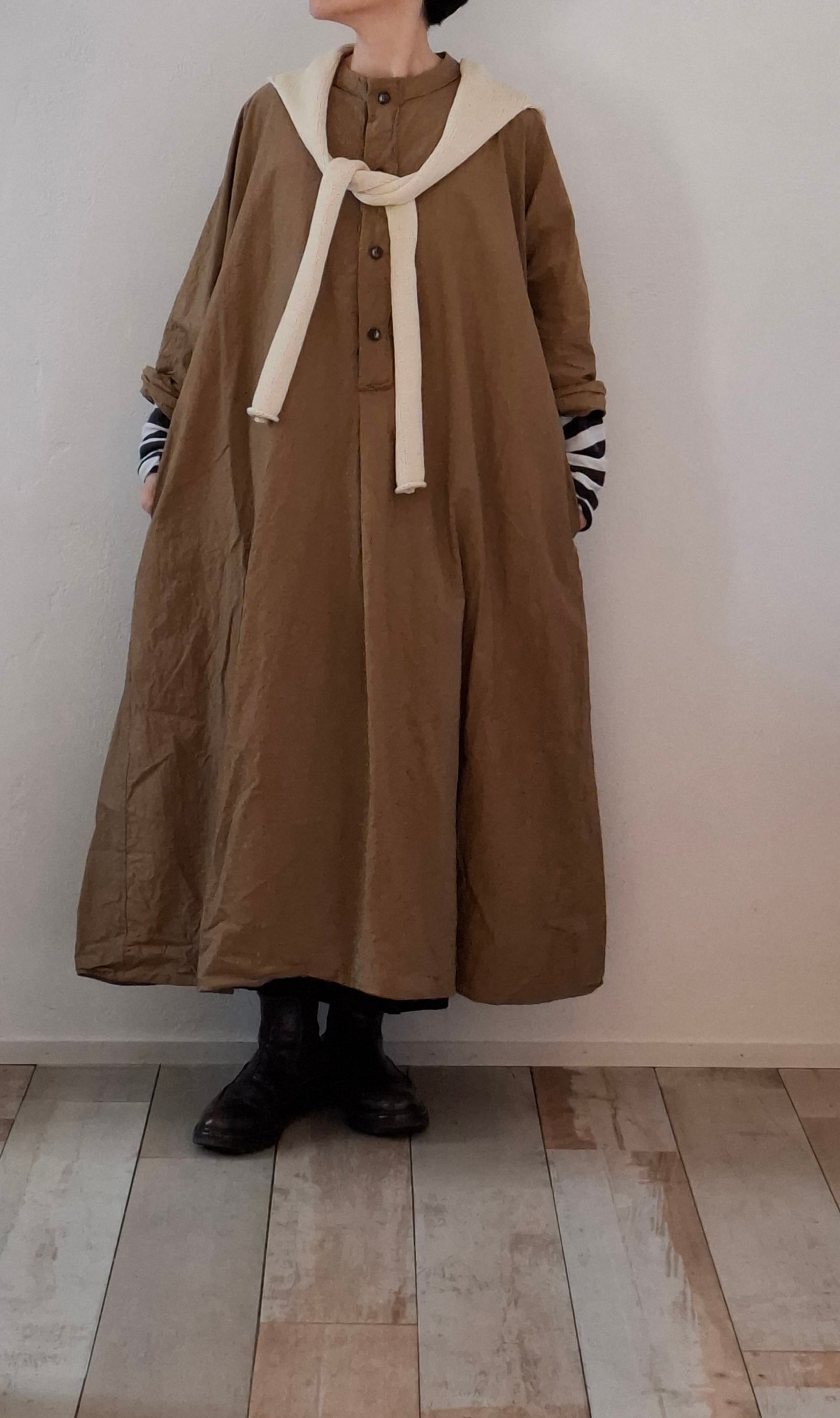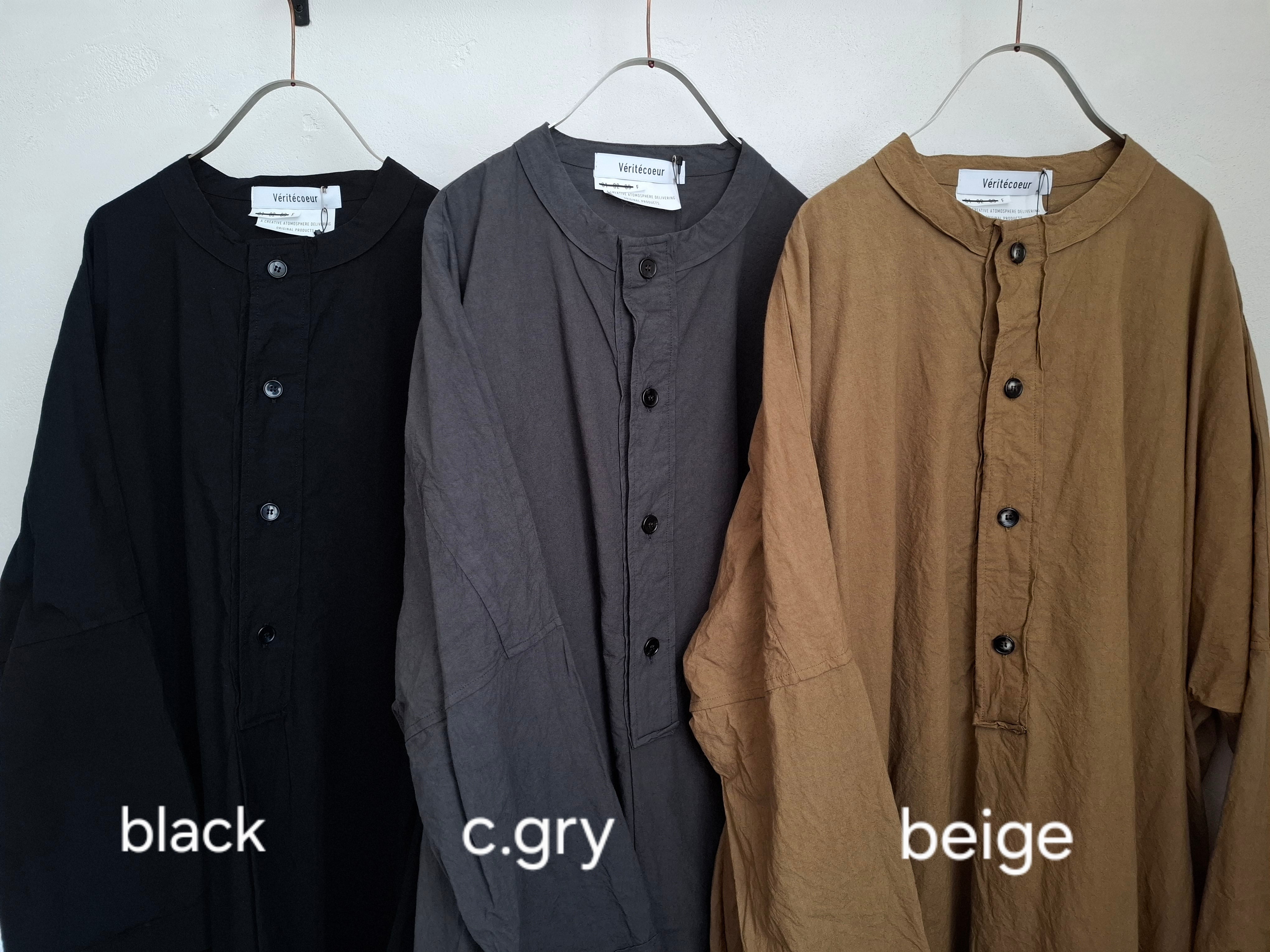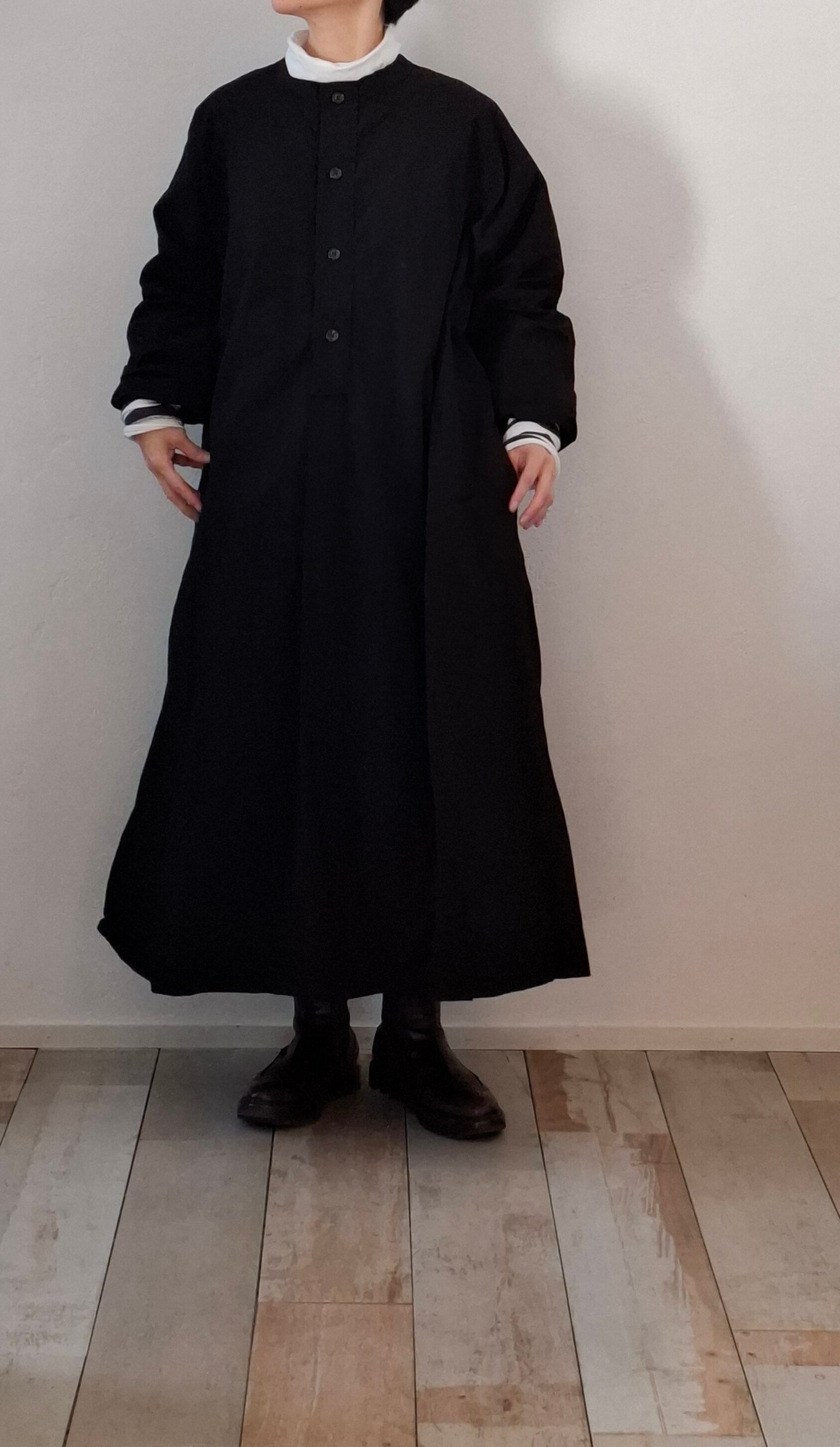 首まわりはヘンリーネック仕様で、すっきりとした印象です。
