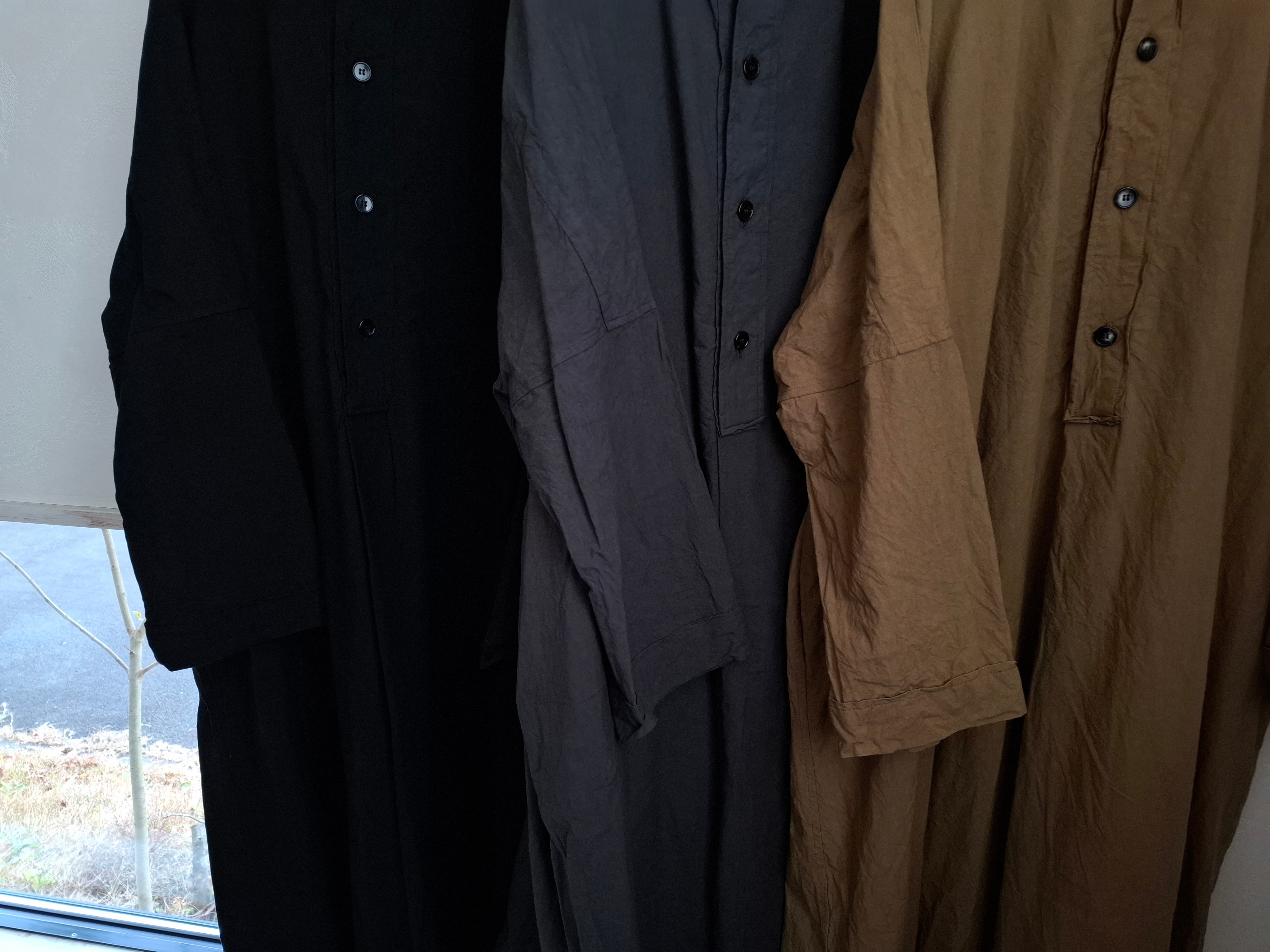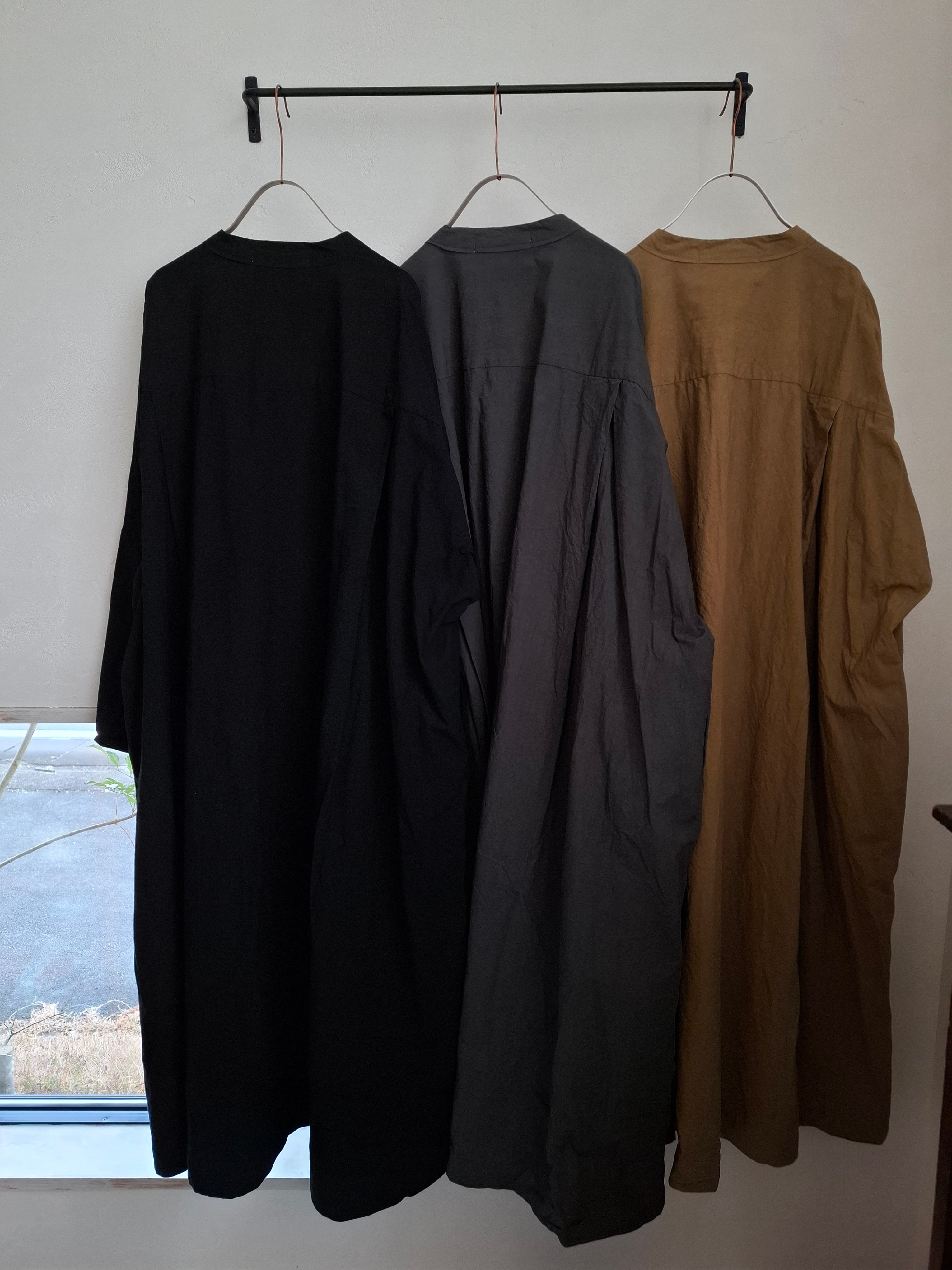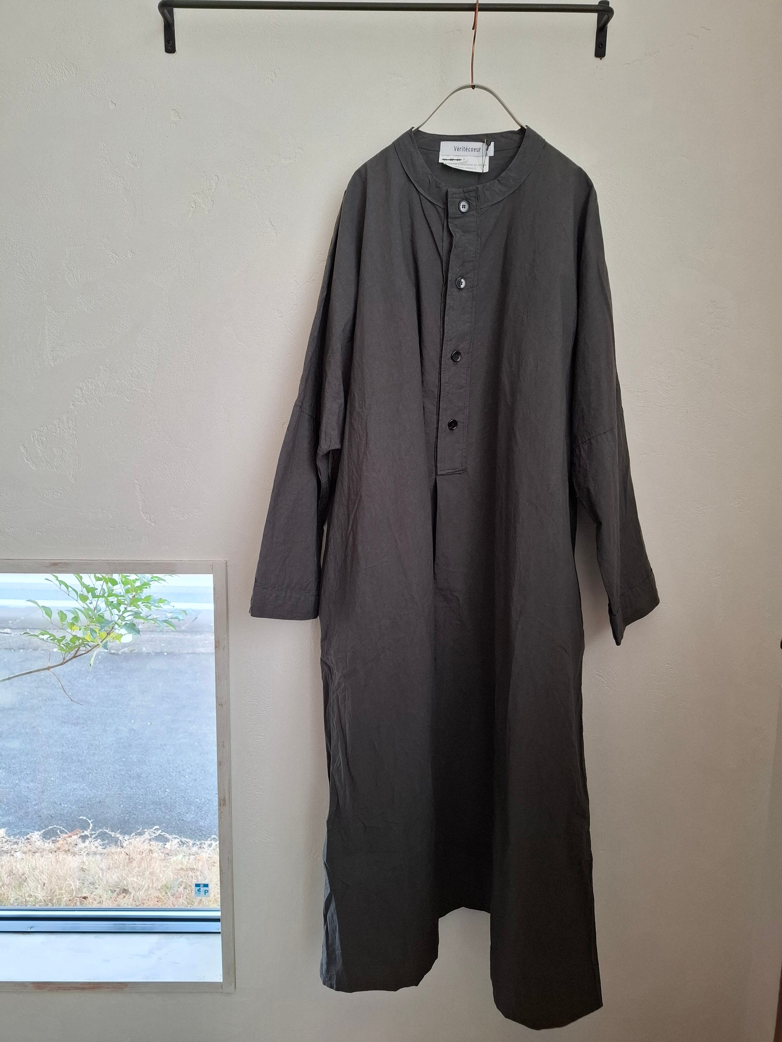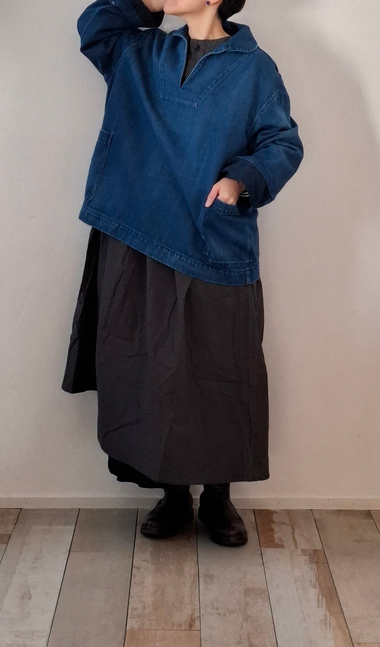 首まわりはヘンリーネック仕様で、すっきりとした印象です。