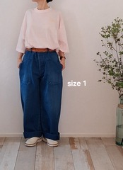 <size 1 ウエスト 66~74cm 股上 35cm 股下67cm ヒップ 120cm わたり幅 35cm 裾幅 26.5cm>