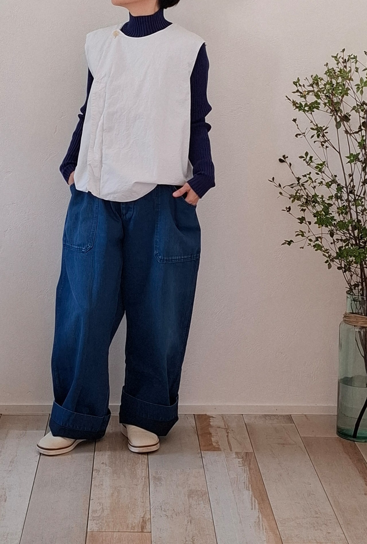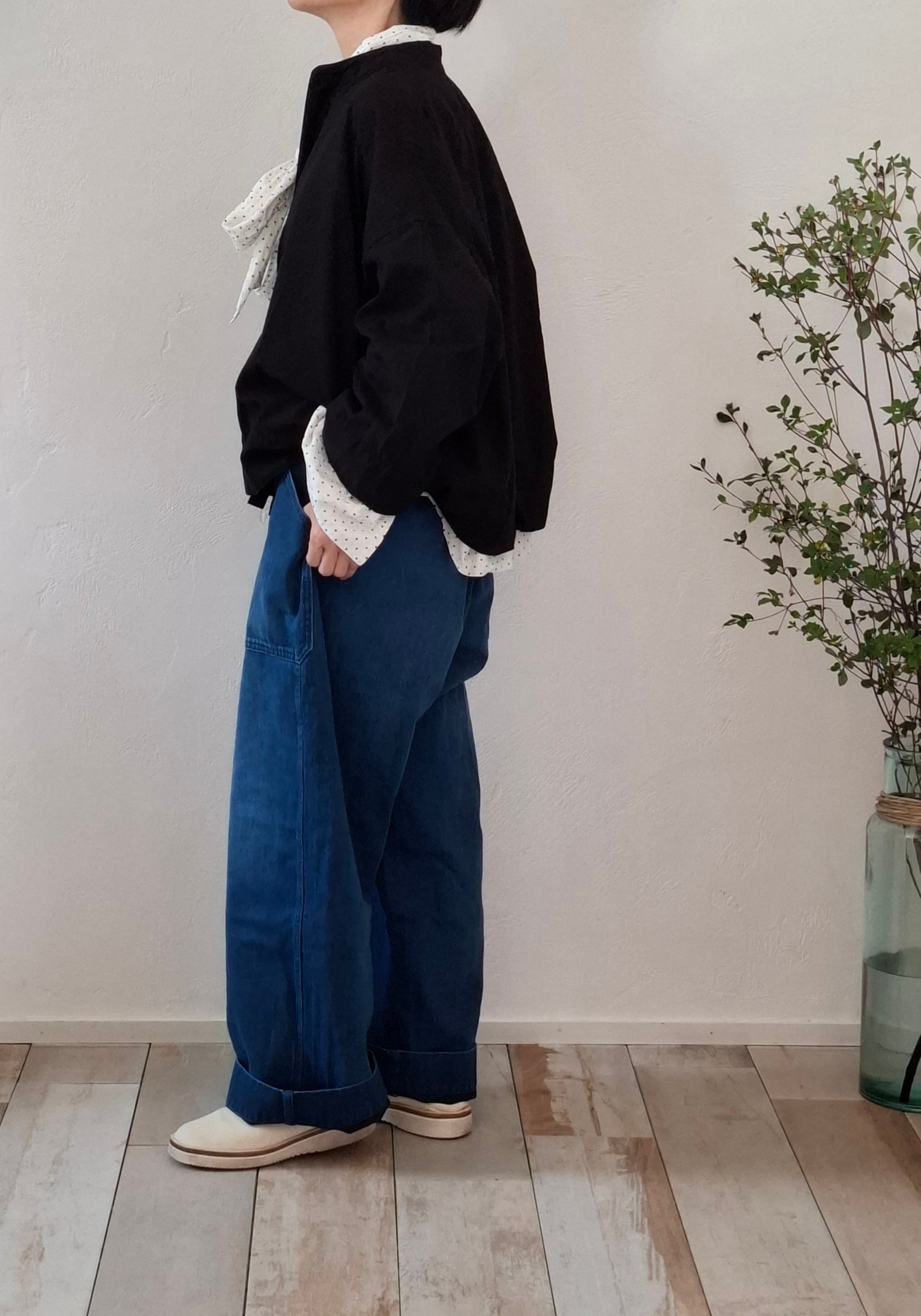 裾に向かって真っすぐに落ちるストレートシルエット。