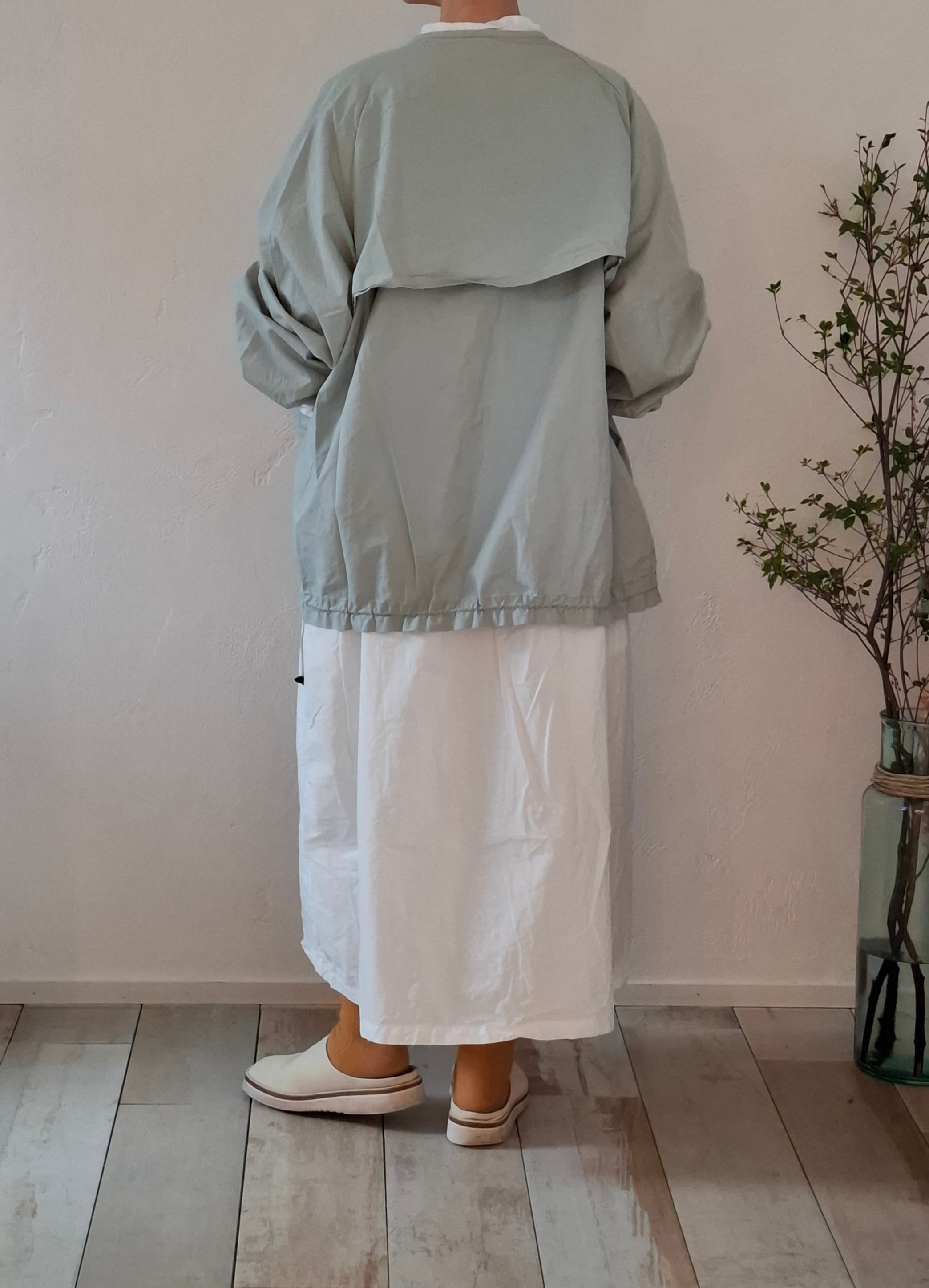 裾にドローストリングが付いており、絞ることで着こなしの変化を楽しめます。