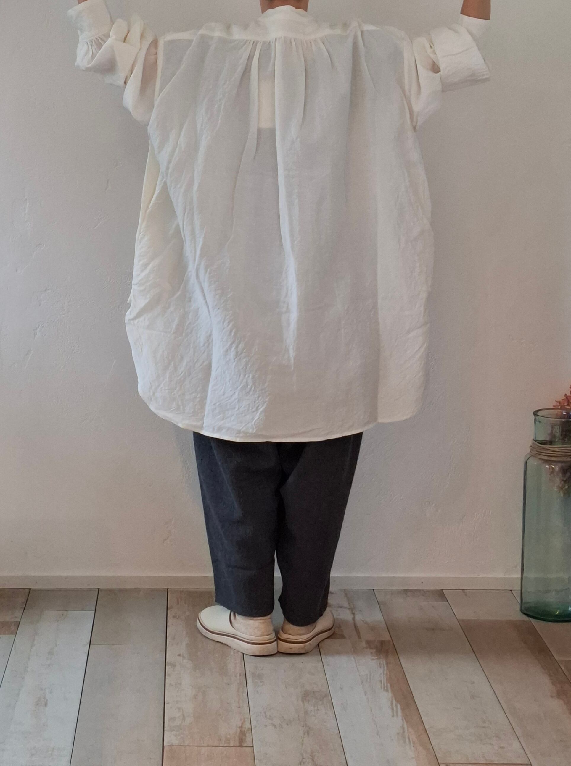 身幅や袖幅にゆとりを持たせ、デイリーに着用しやすくパンツやスカートと幅広くコーディネートを楽しんでいただける一枚です。