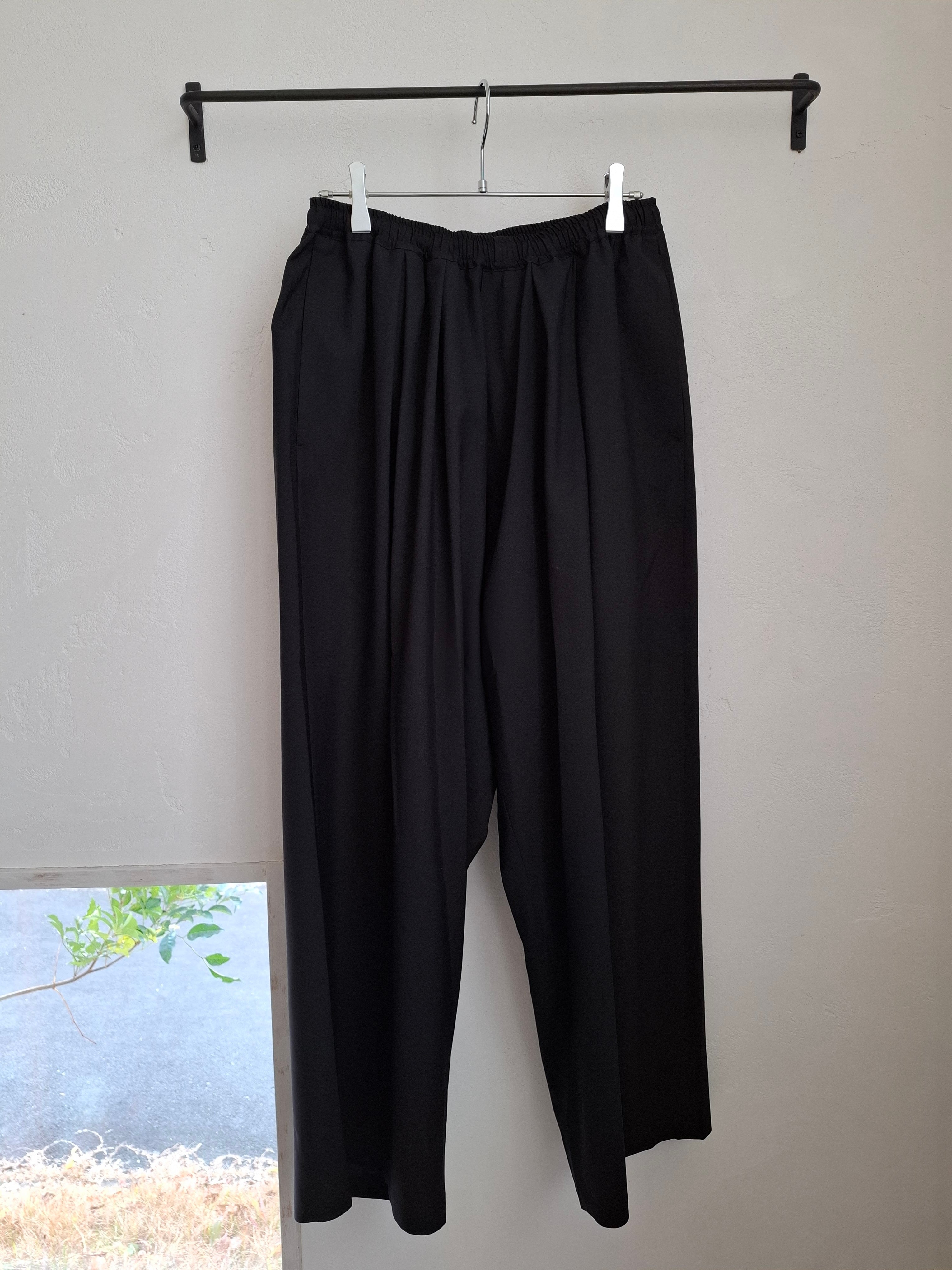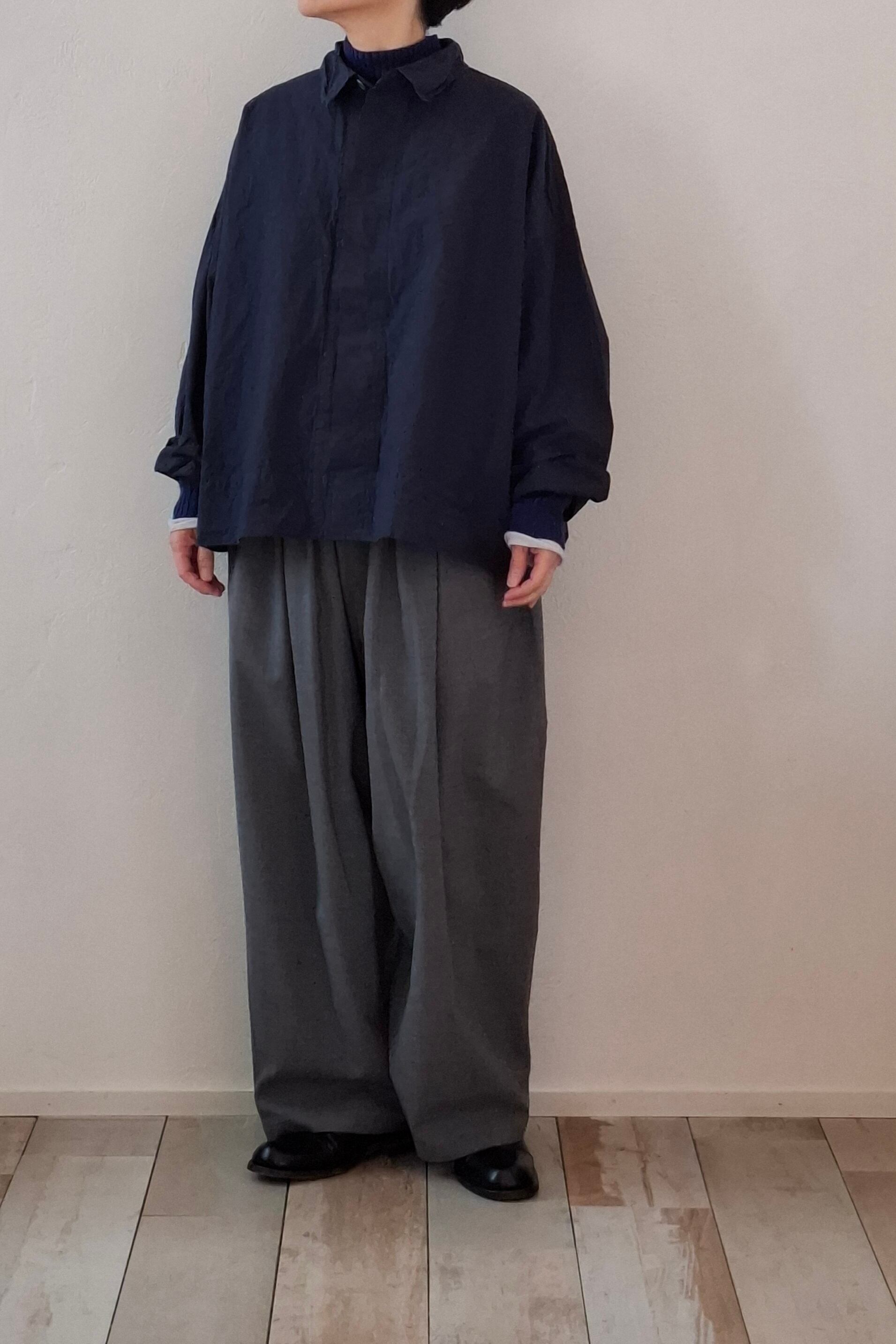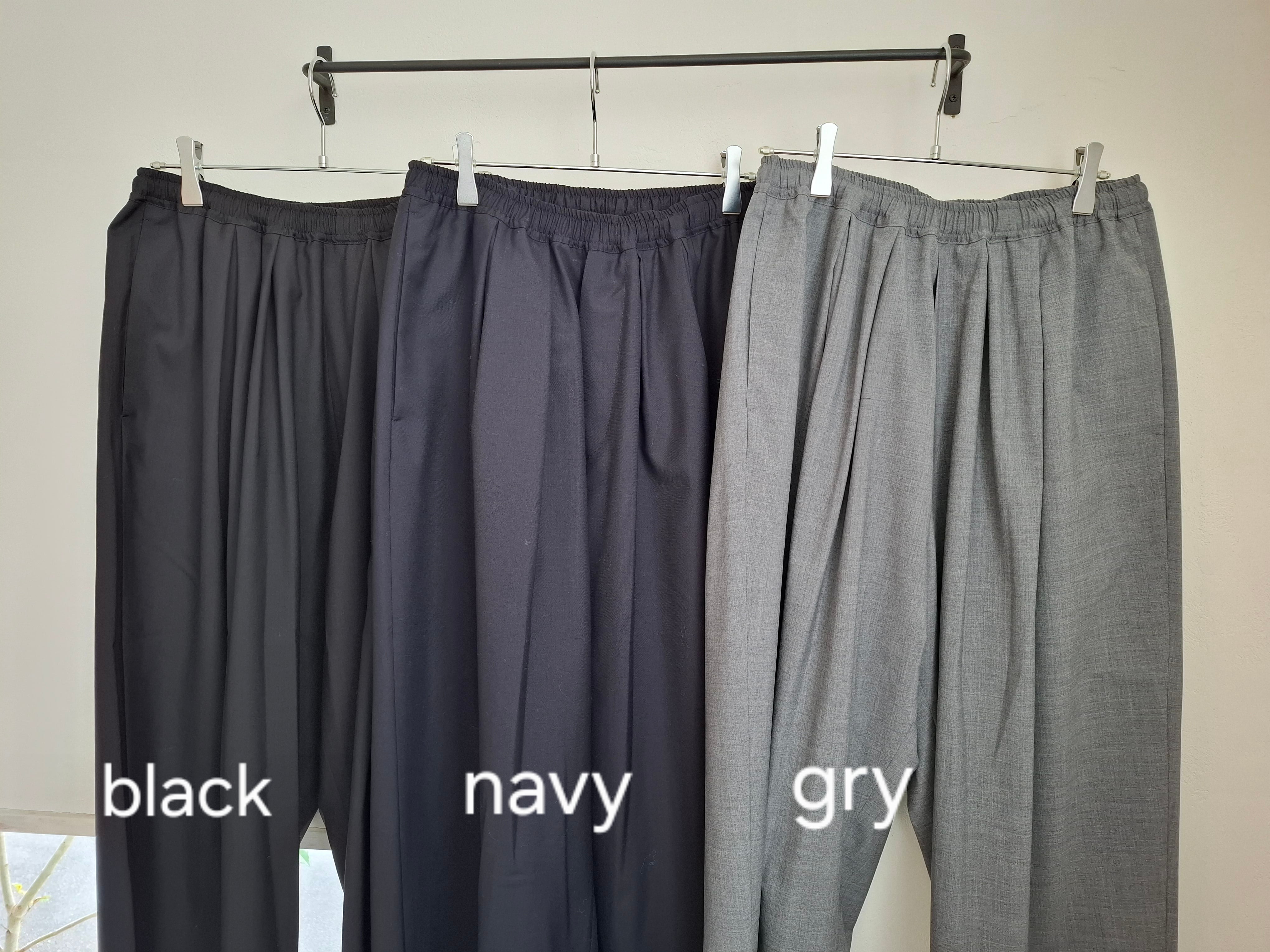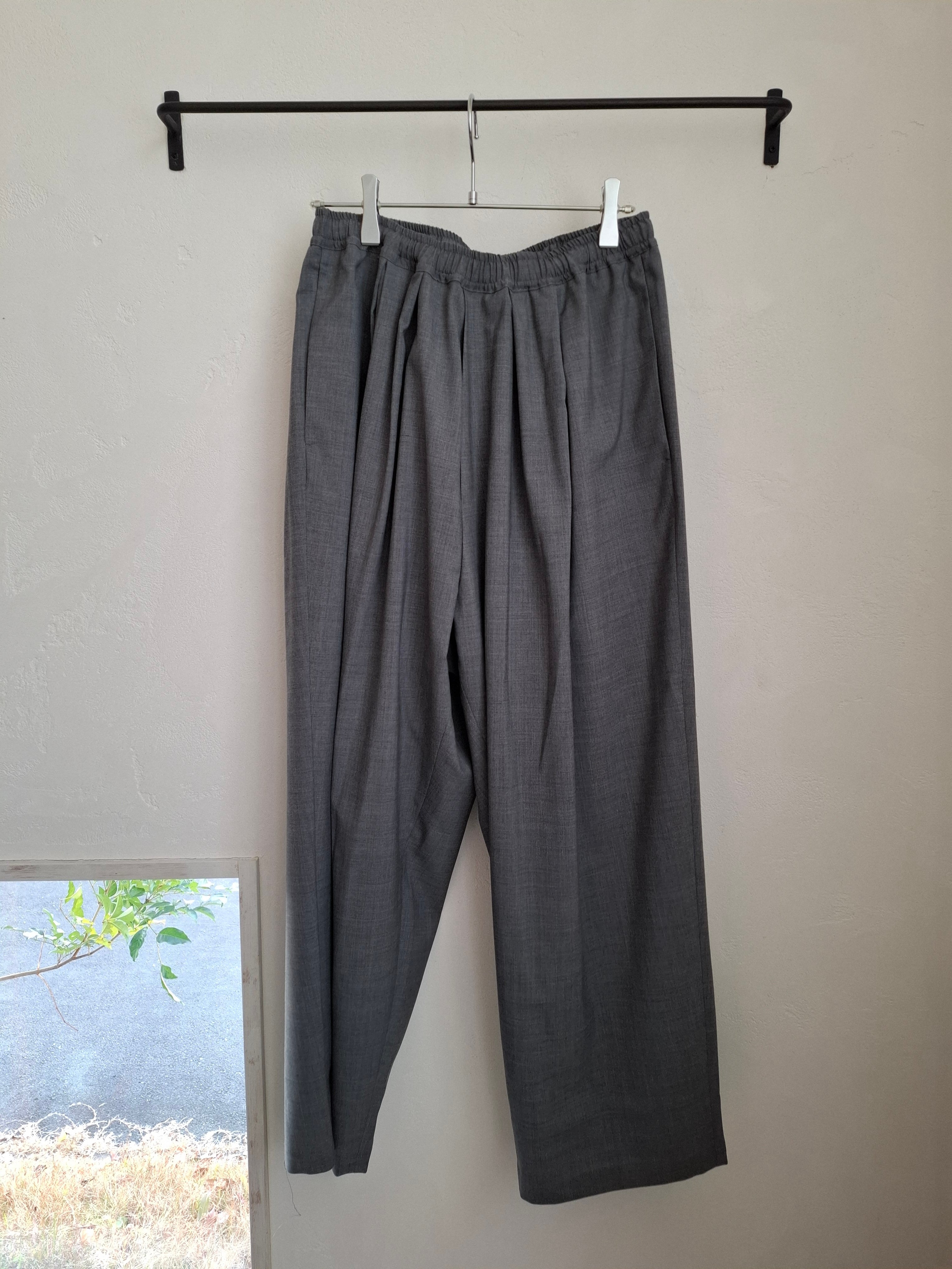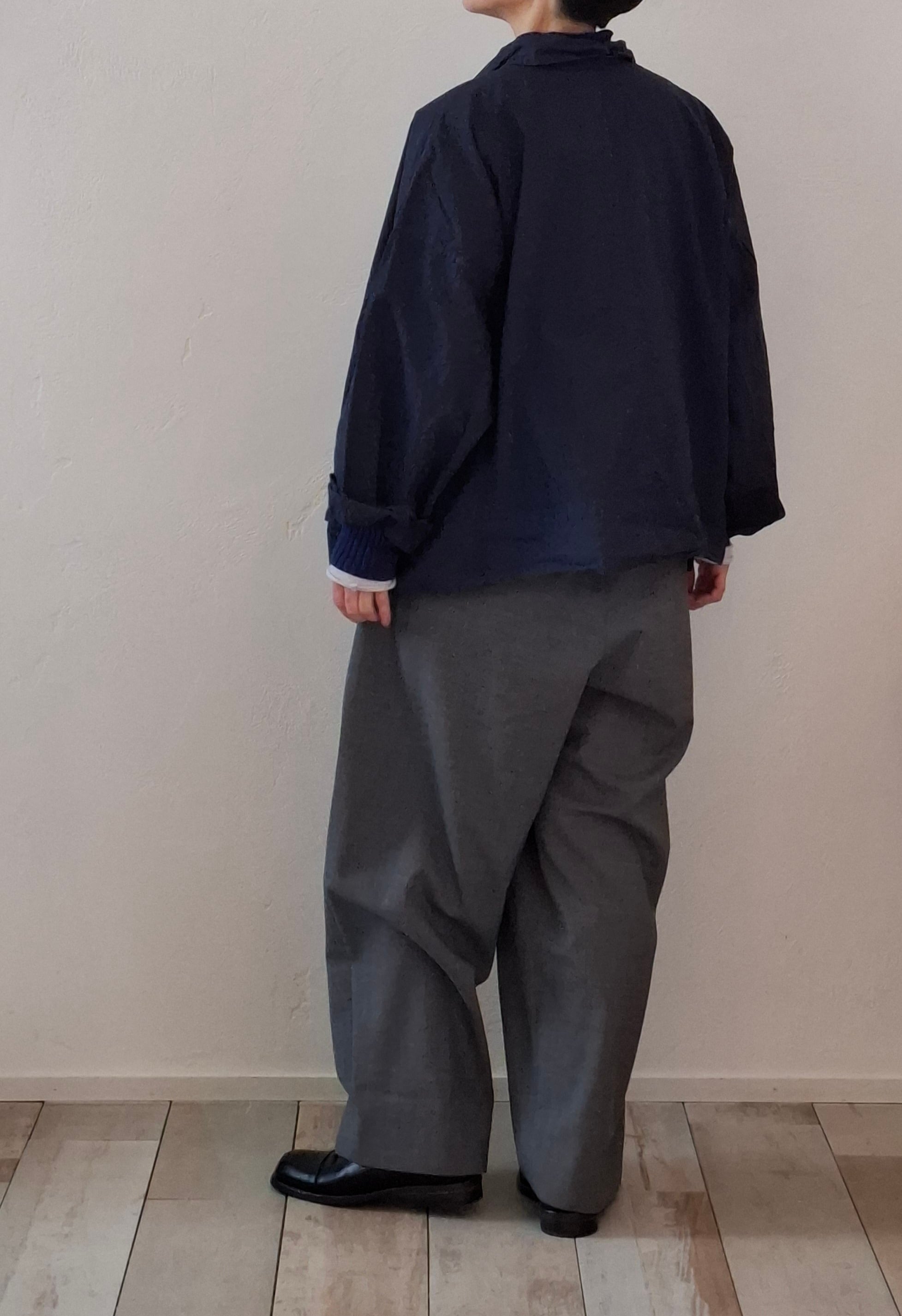 腰回りにゆとりを持たせ、裾に向かって緩やかにテーパードしたシルエットです。