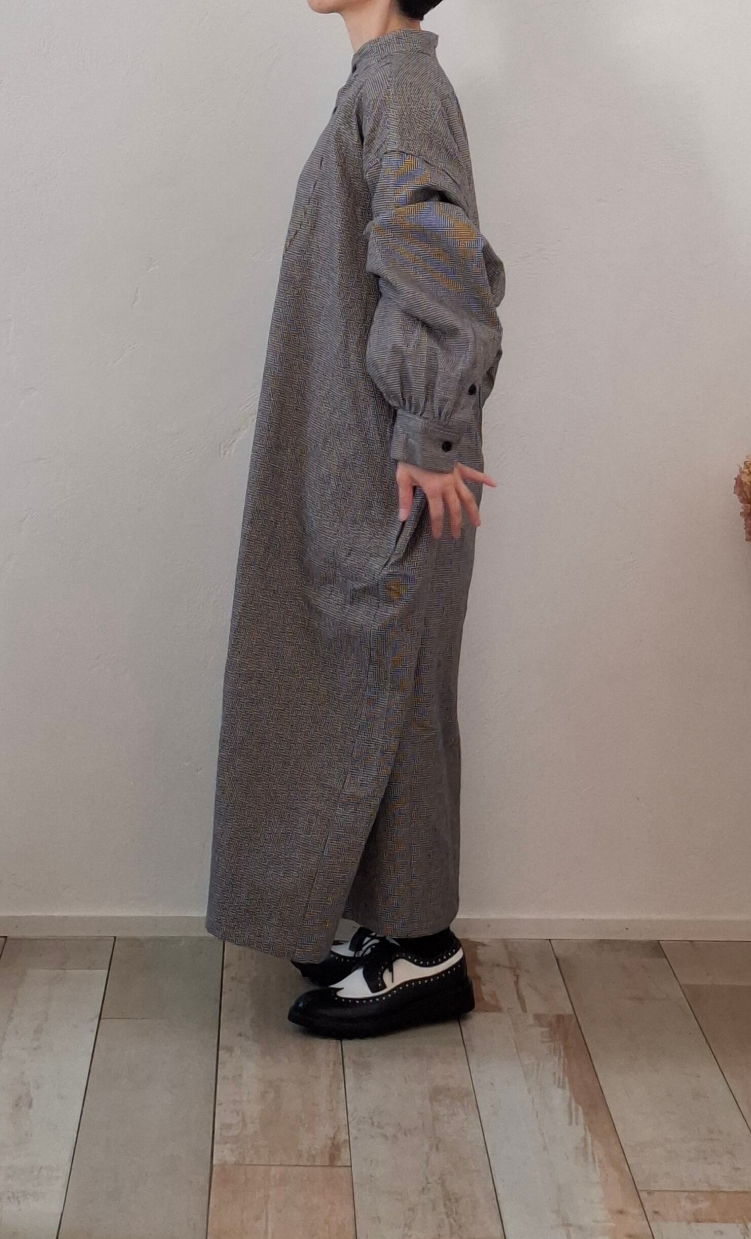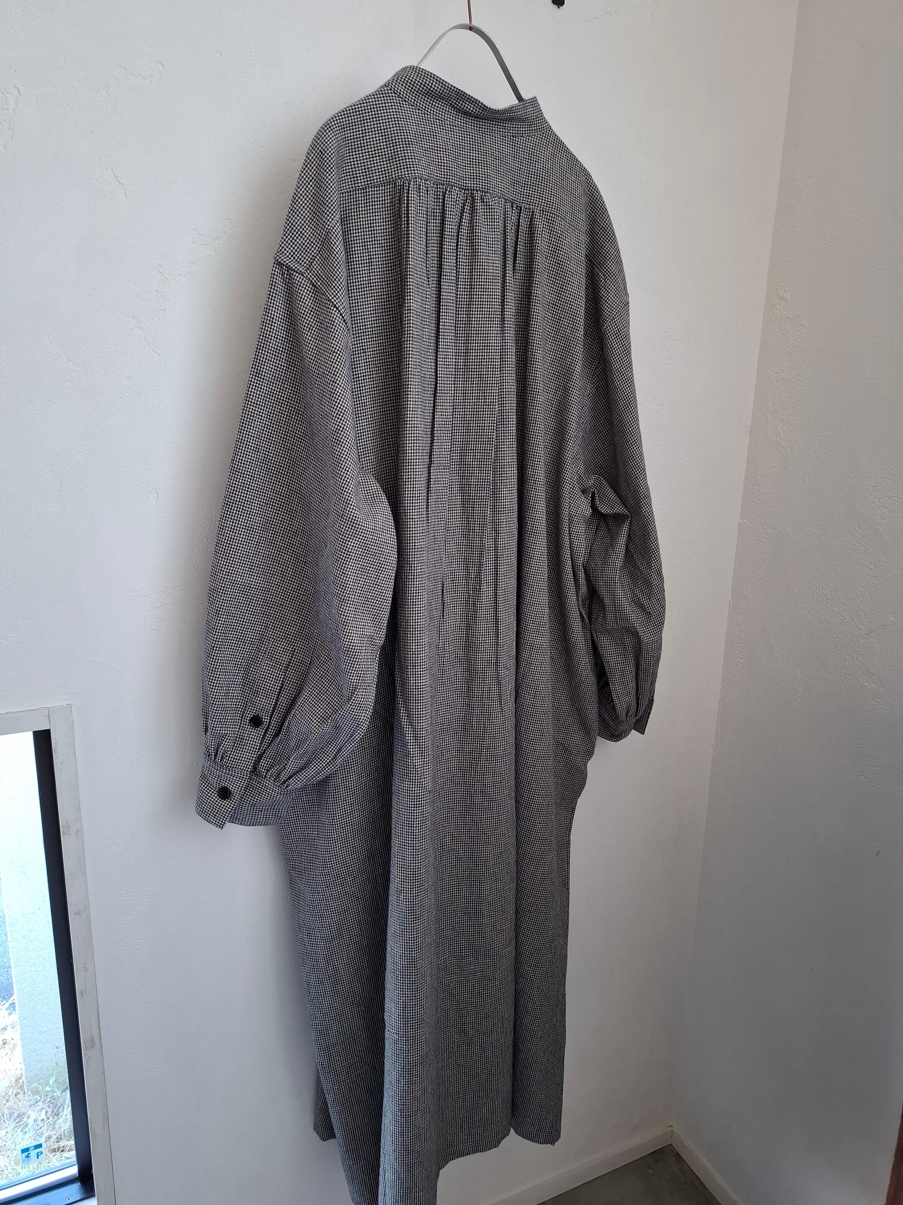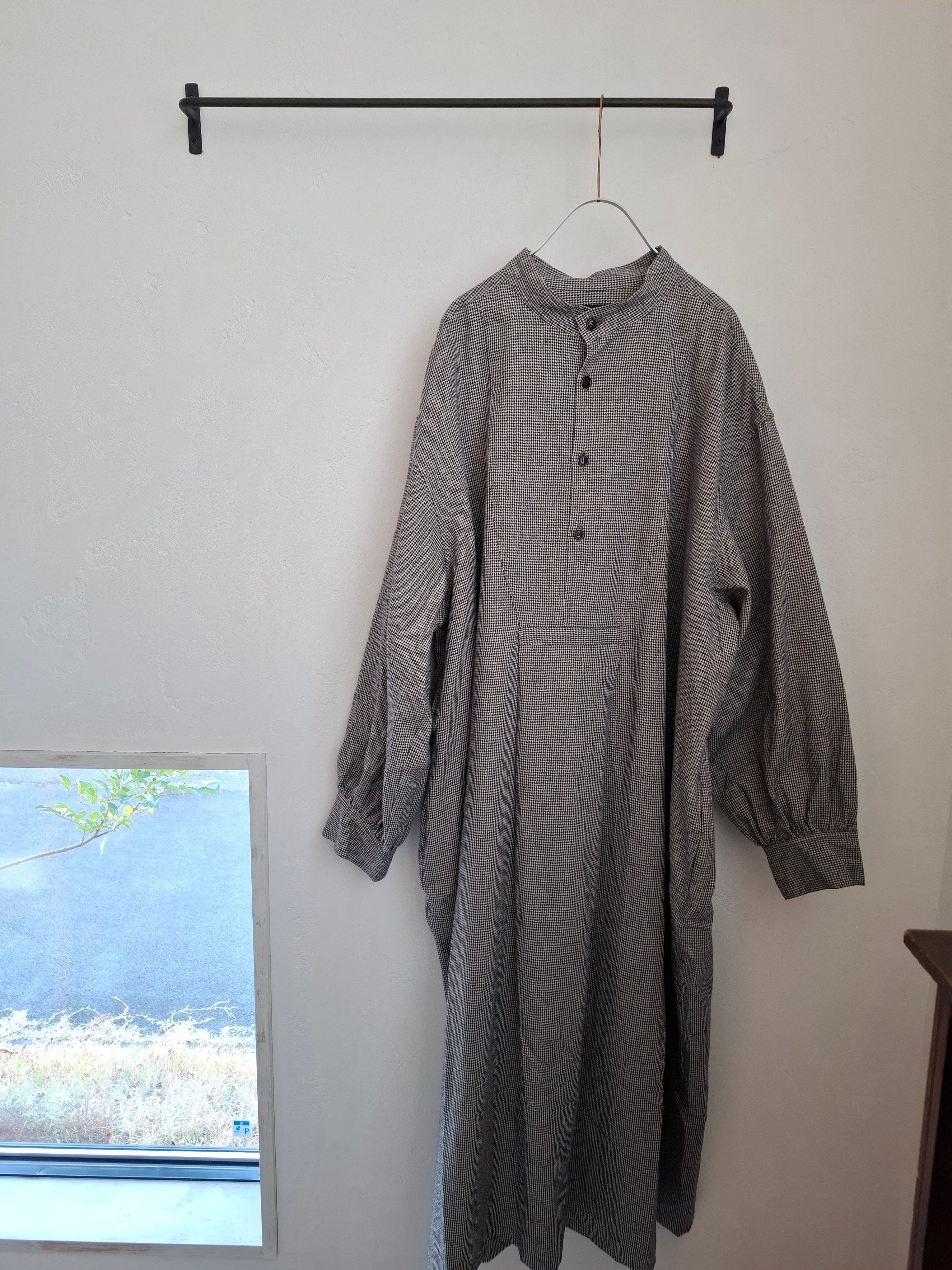 フロントの胸当てや狭く設定された後ろのヨーク切り替えが、ヴィンテージのドレスシャツを彷彿とさせるワンピース。身巾や袖巾にゆとりを持たせ、デイリーに着用しやすいバランスに仕上がっています。