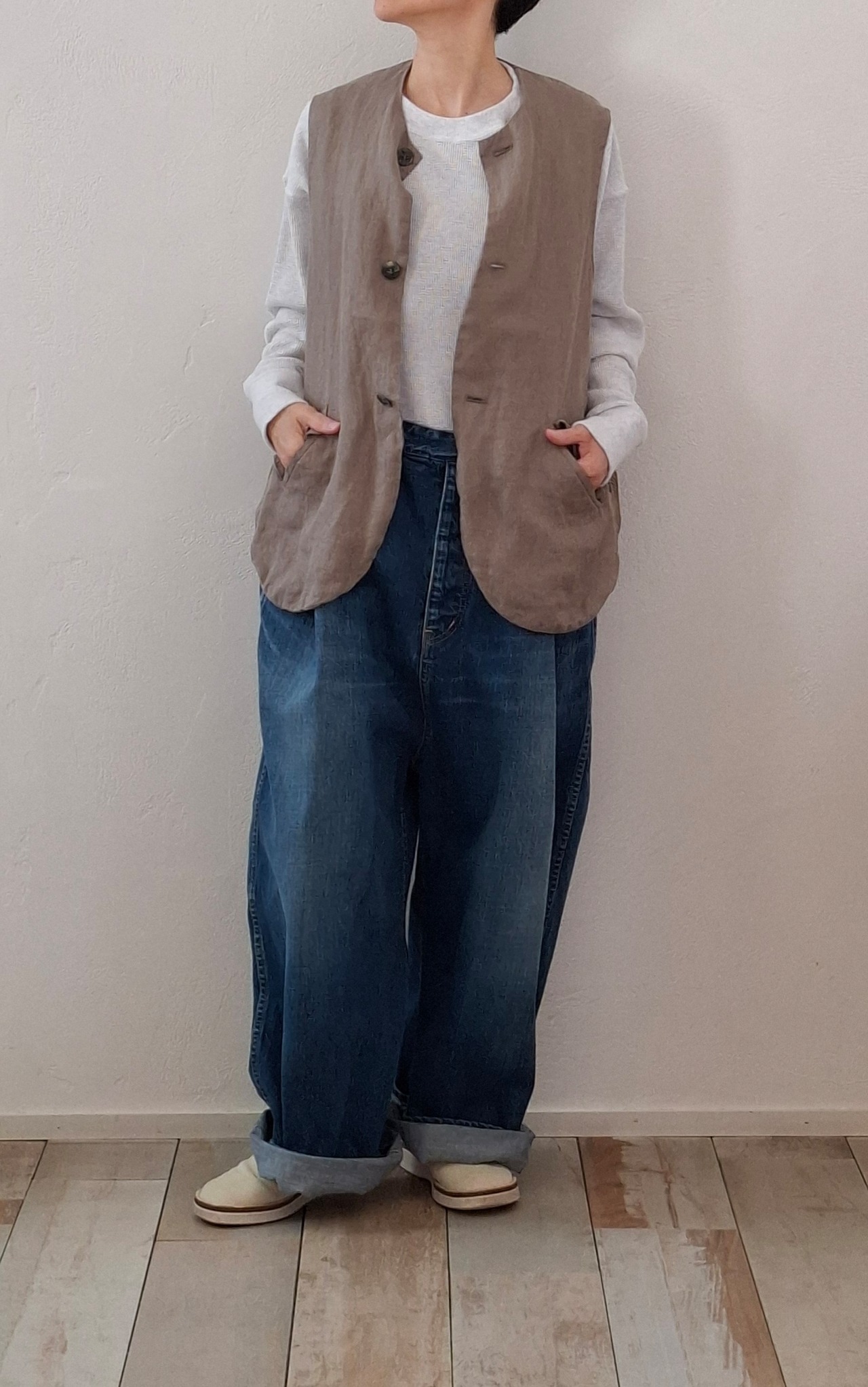 緩やかな綾目が生む立体的な表情と、リネン特有のナチュラルな風合いが魅力です。