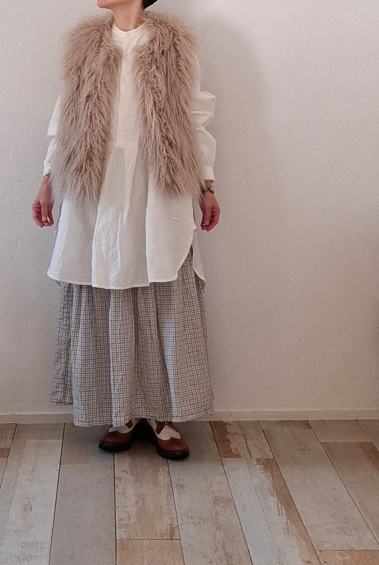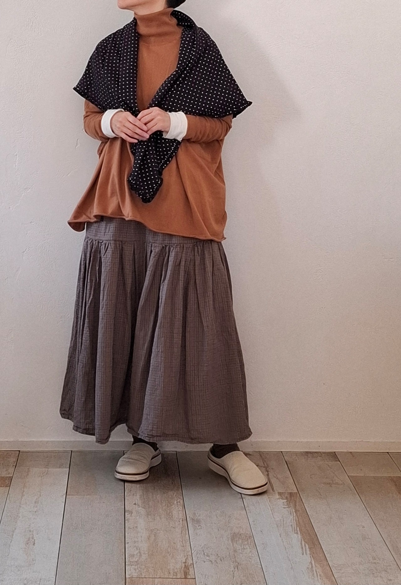 ウエスト周りはスッキリと足元のふんわりラインが可愛い一枚です。