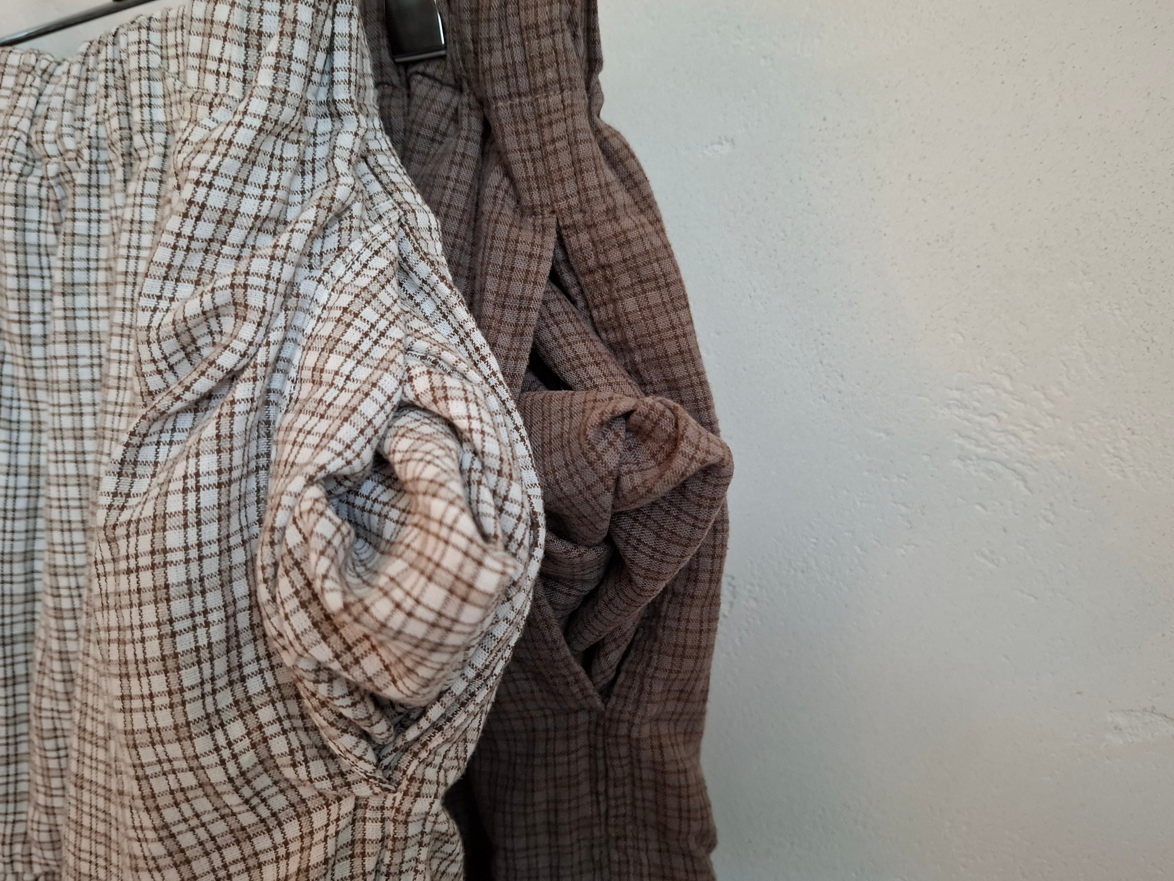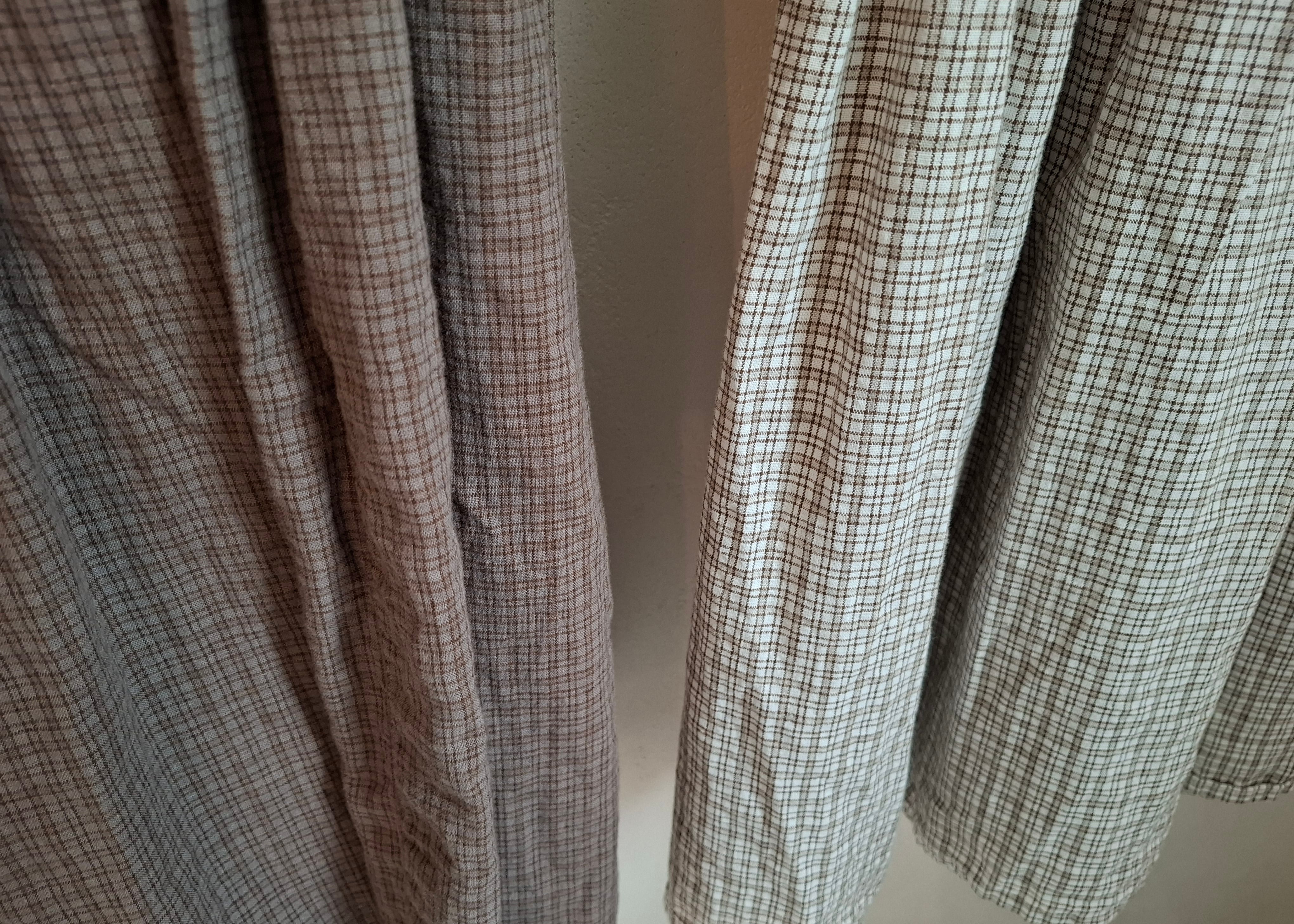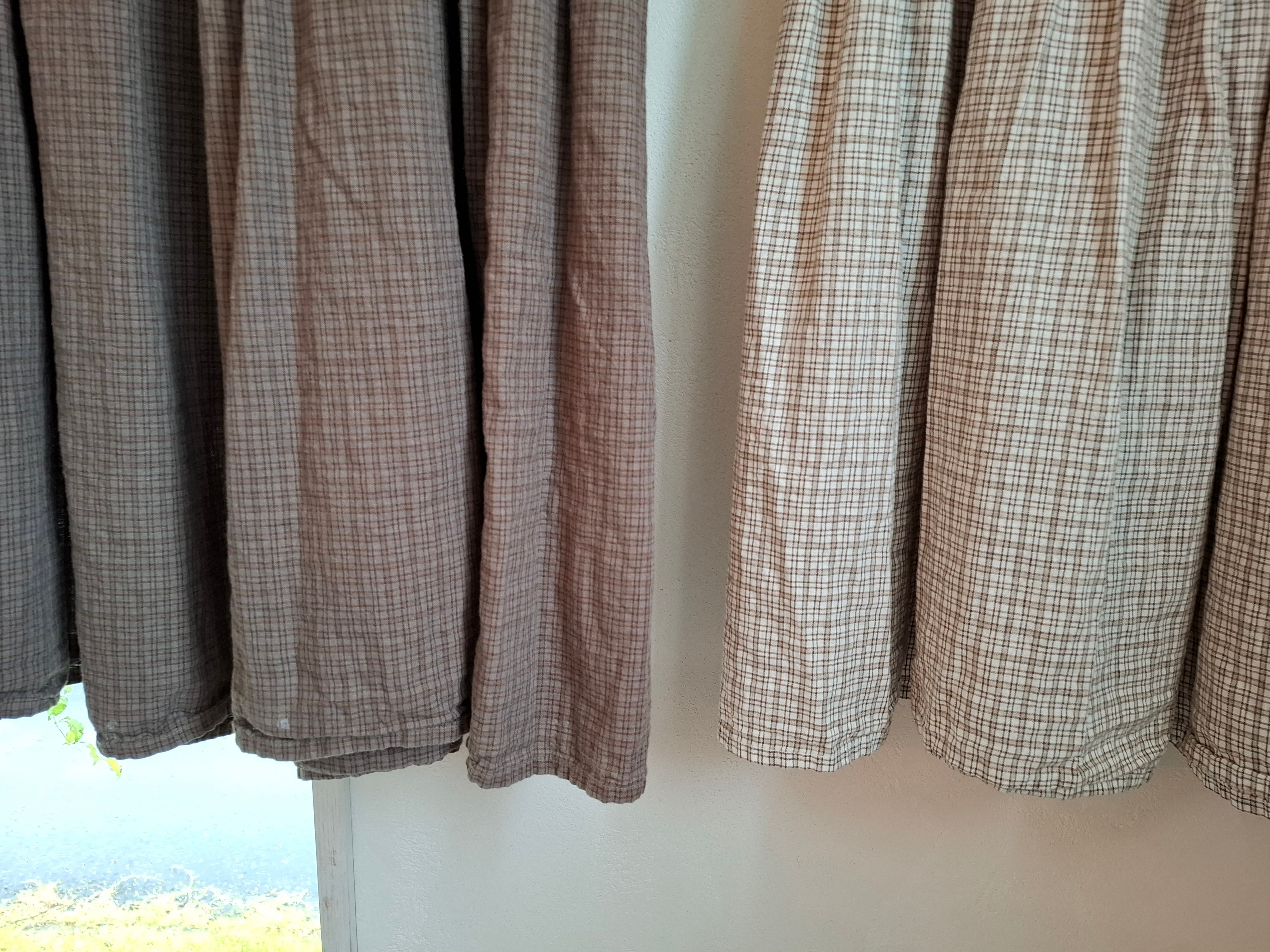 リネン糸を豊富に使用し紡績糸とトップ糸を組み合わせて織られたチェック柄生地です。
