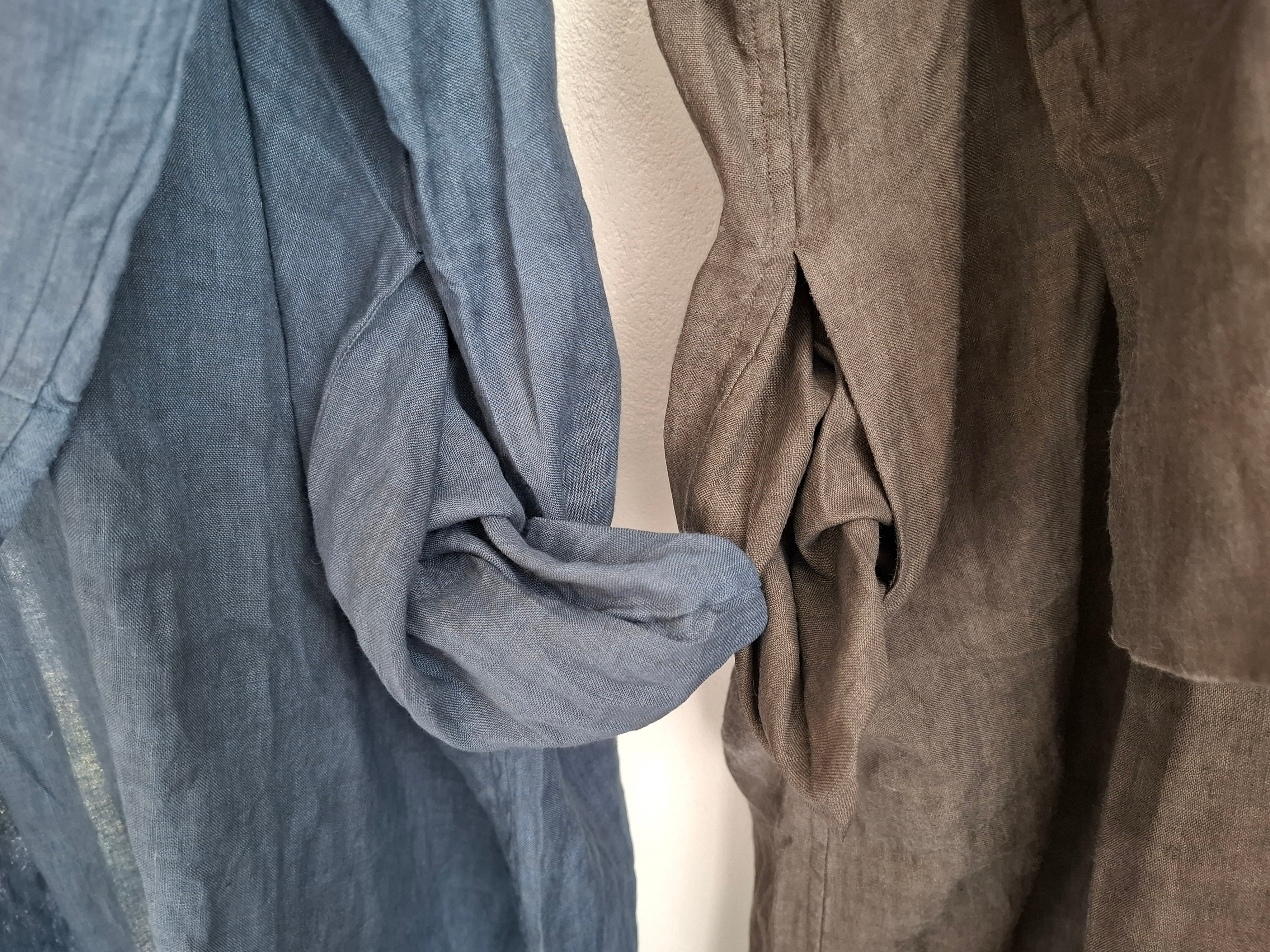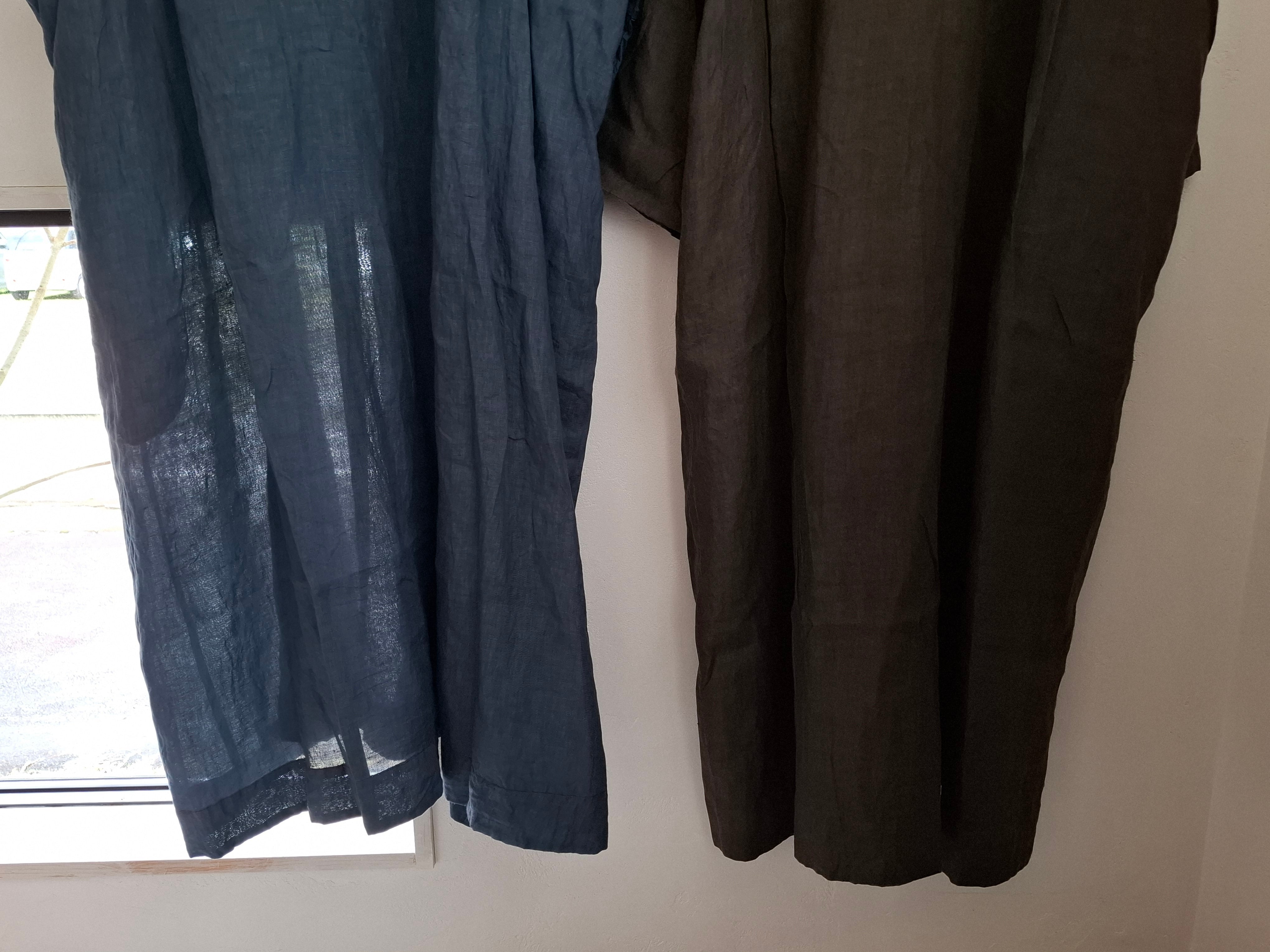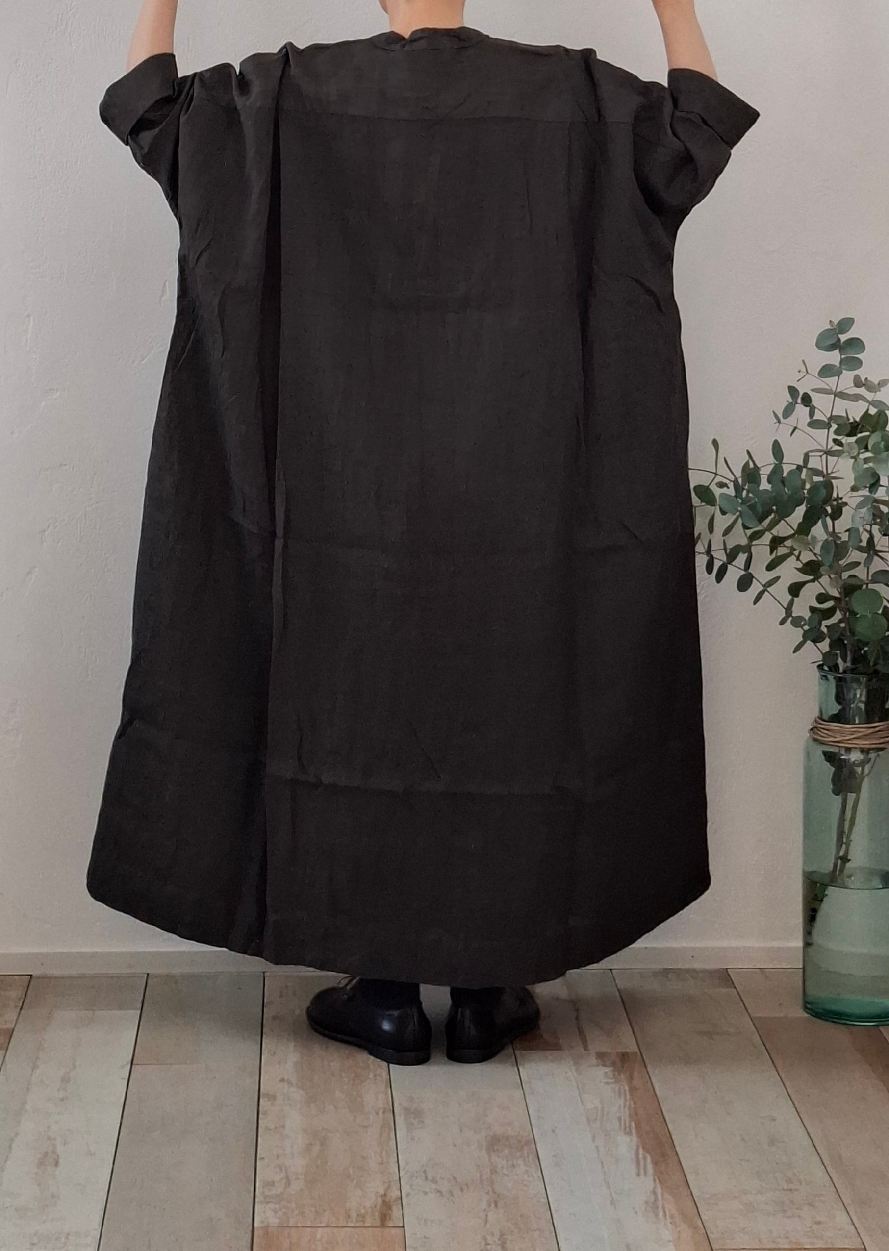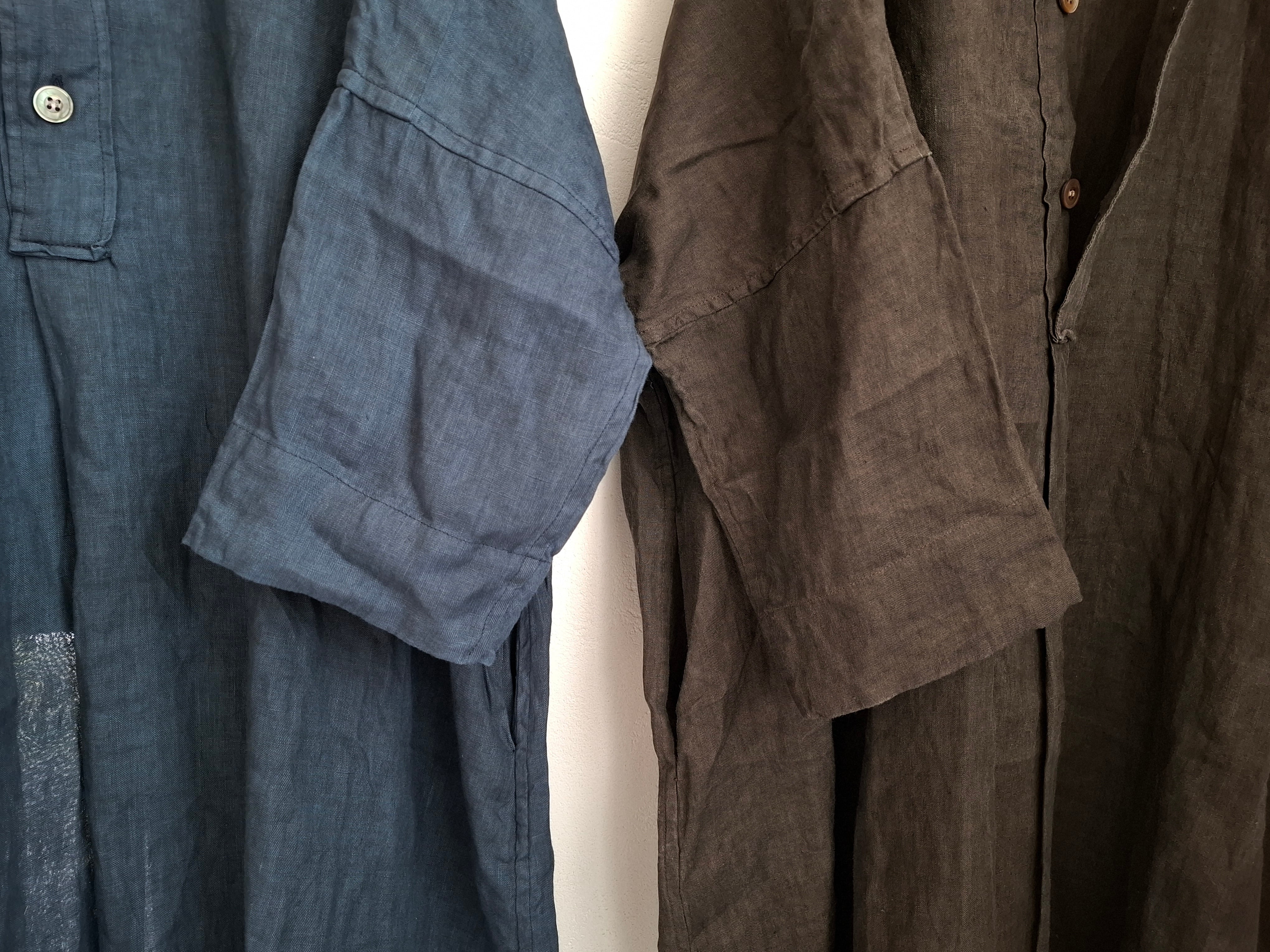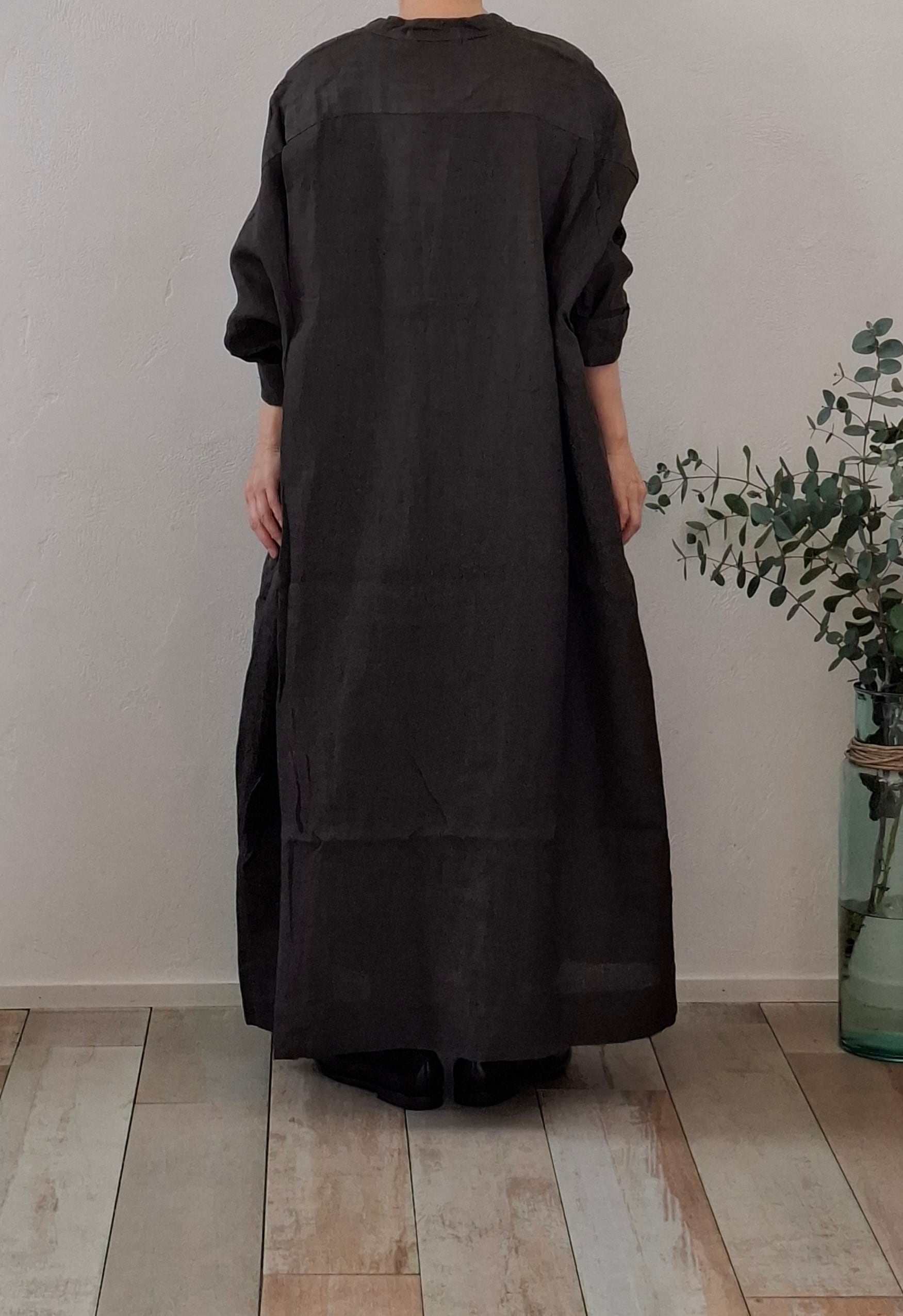人気のヘンリーネックワンピースデザインでのリネン素材を使用し、墨染めが施された贅沢な一枚です。
