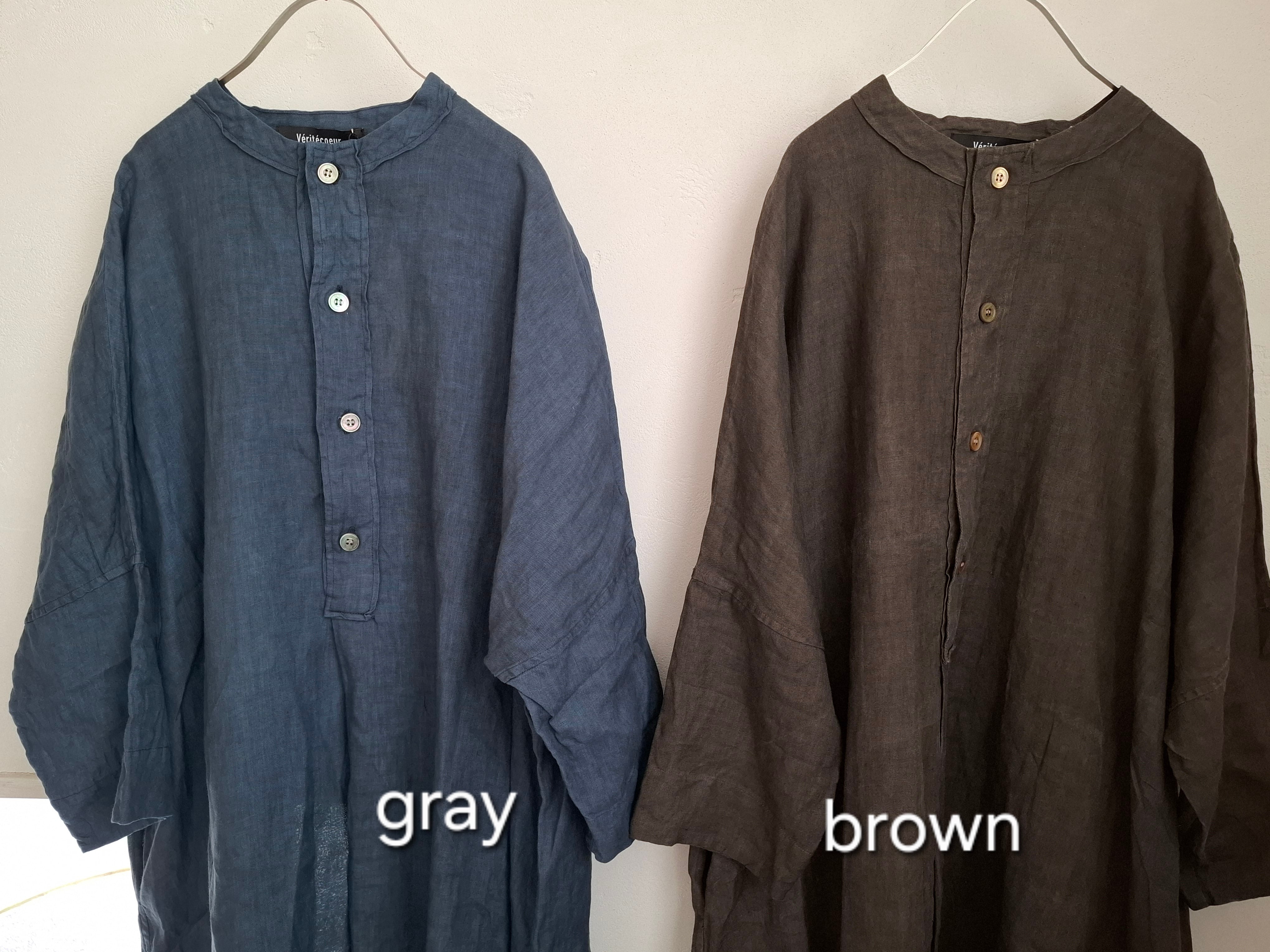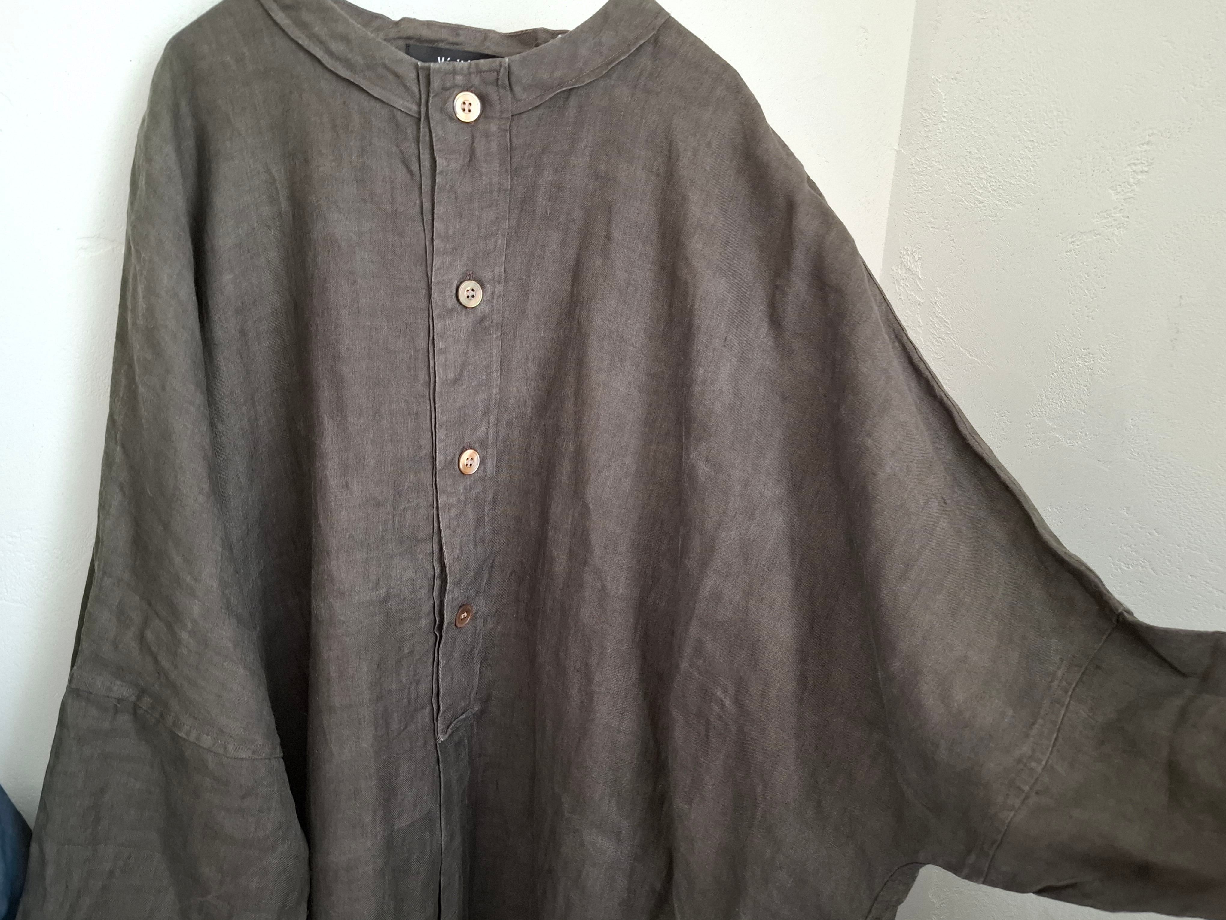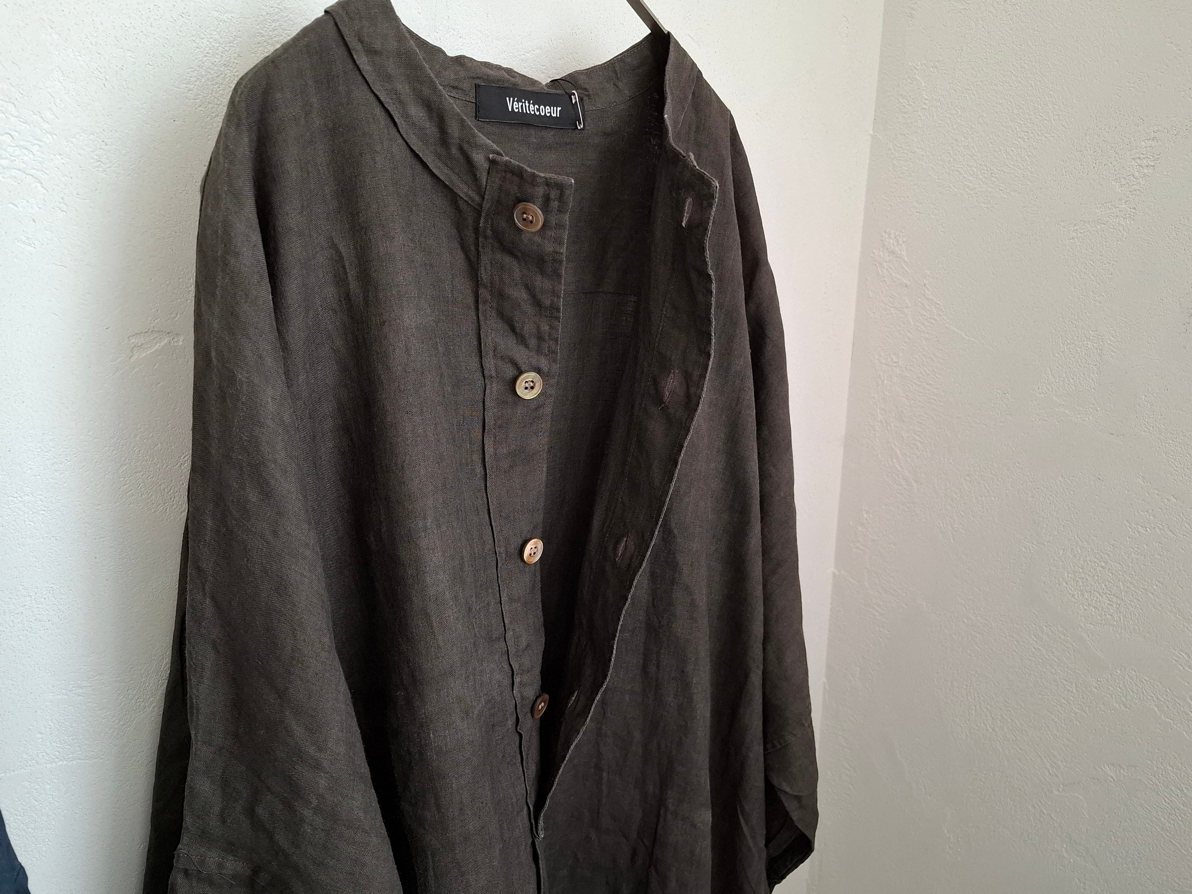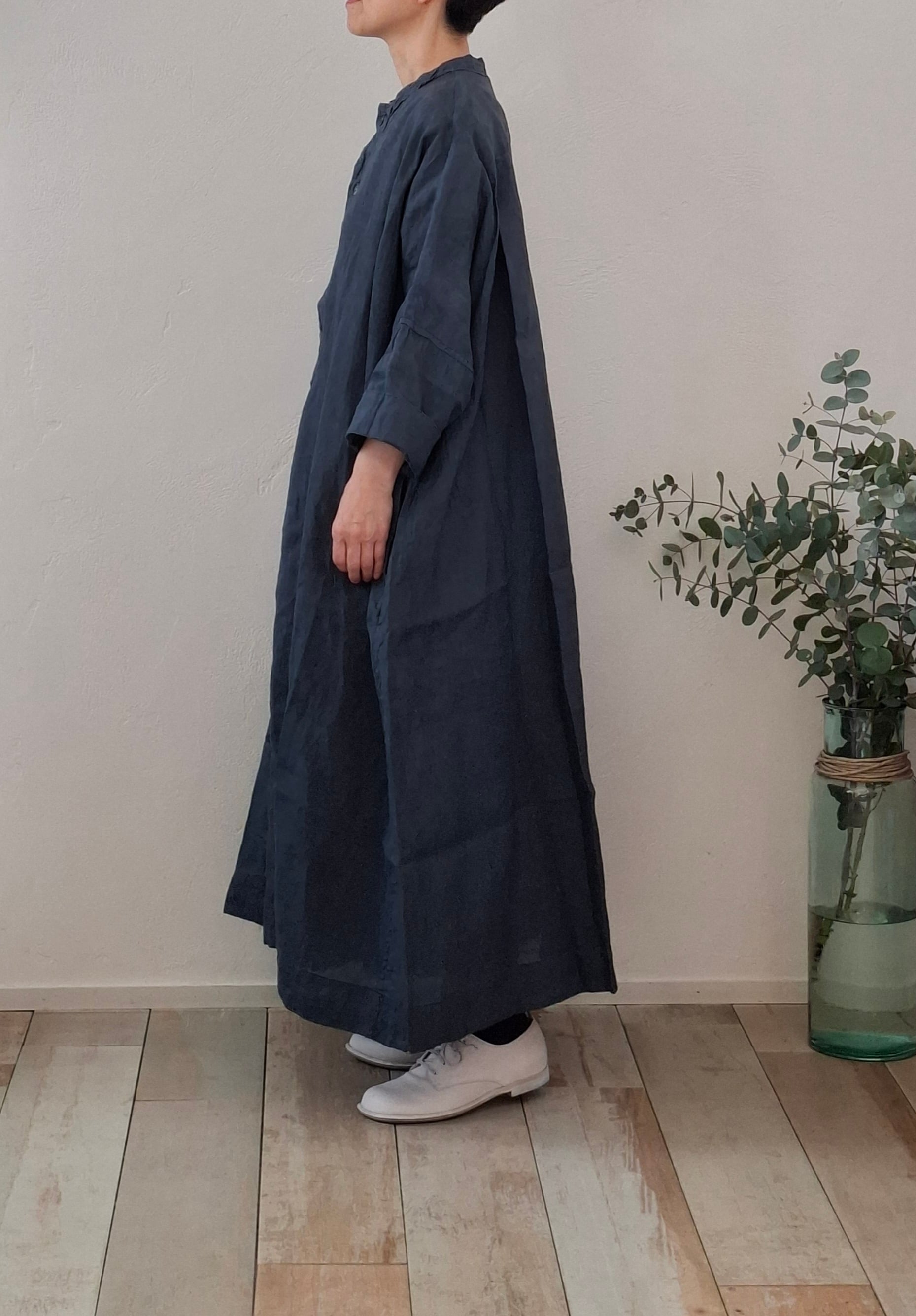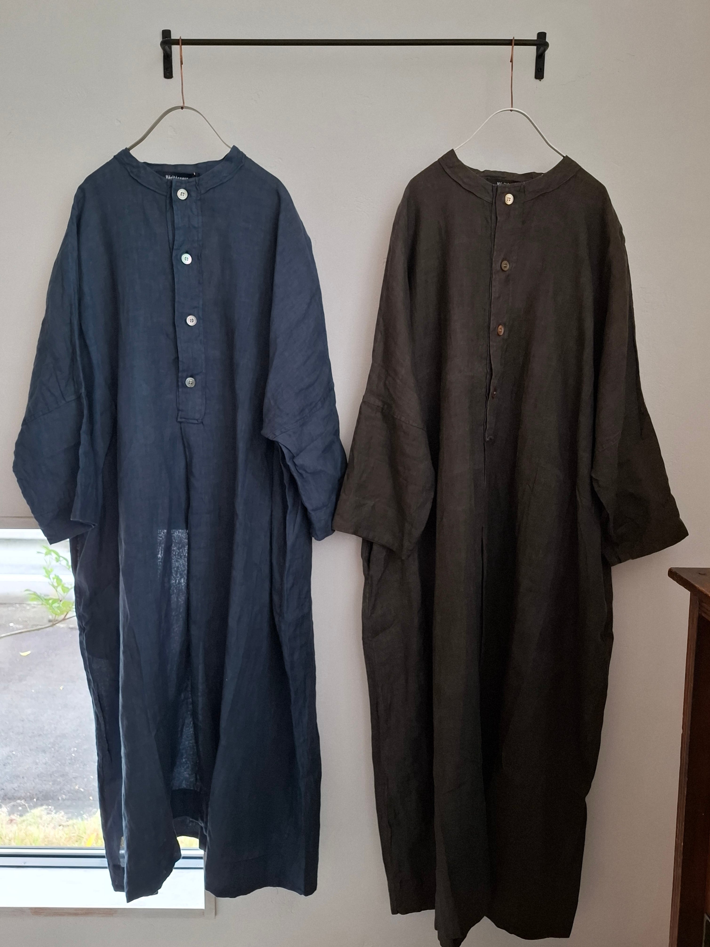 Veritecoeur VC2841 墨染めリネンヘンリーネックワンピース
