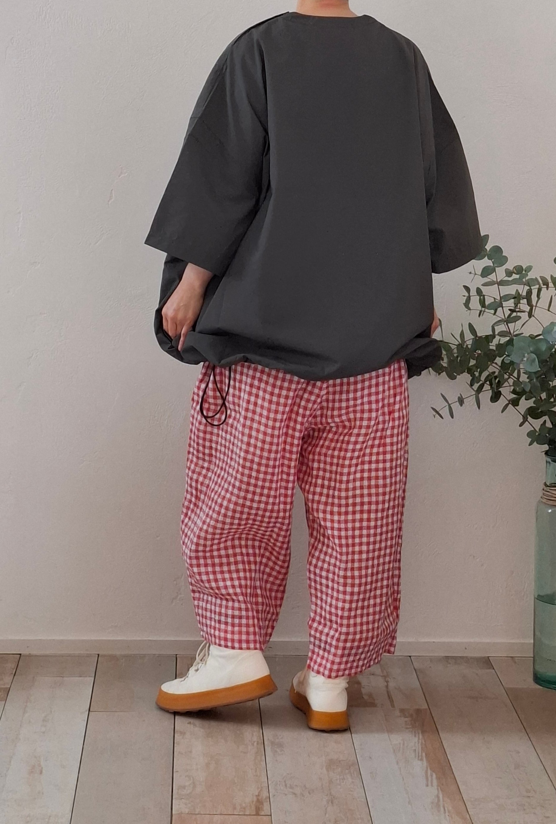 軽やかなアンクル丈とリネンならではの風合いが楽しめ、夏に涼し気な一枚です。