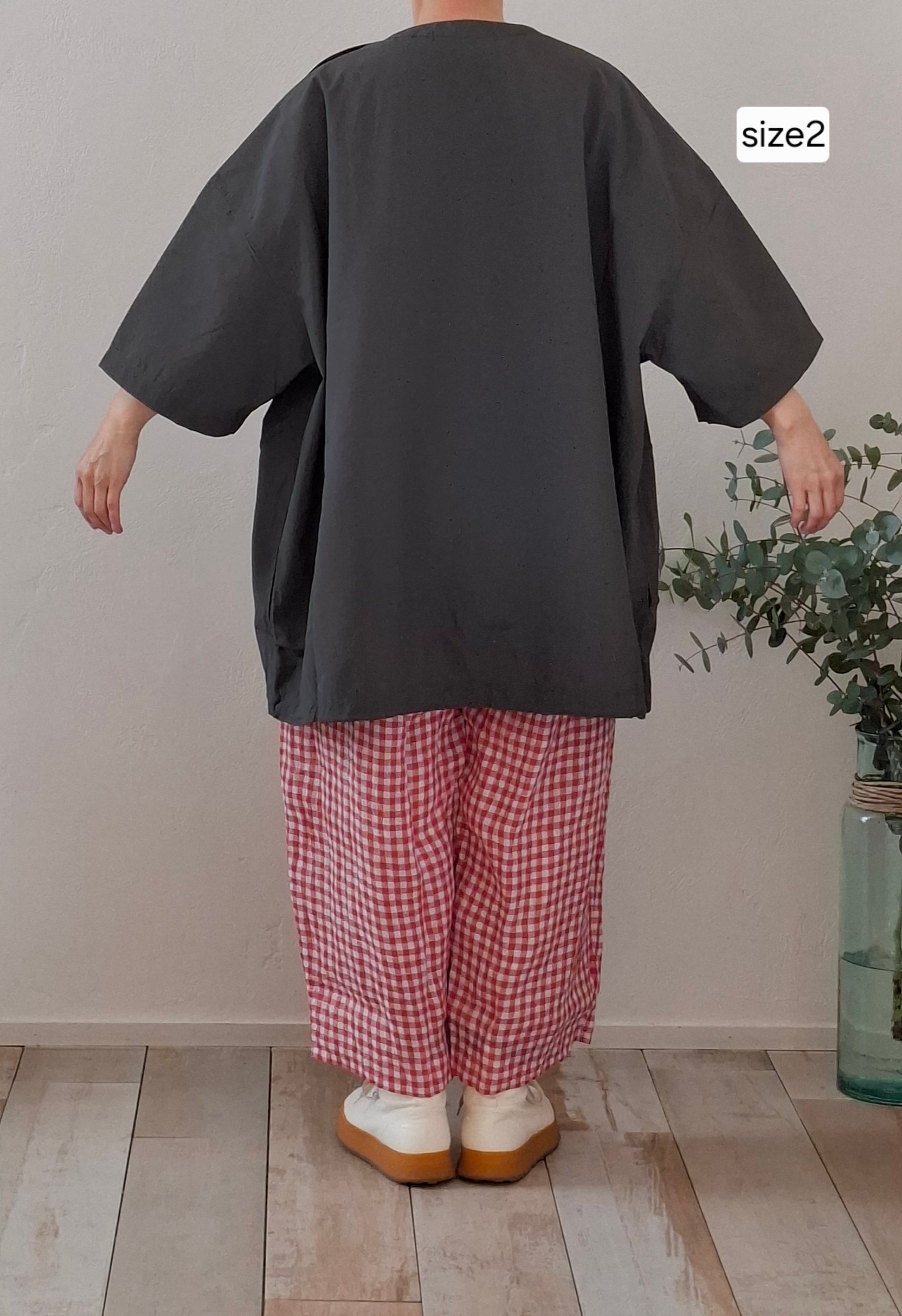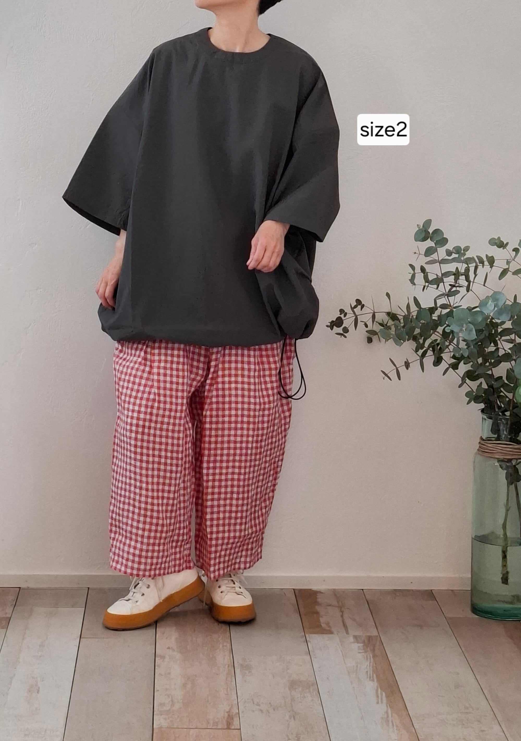 2(着丈 77cm 身幅 76cm 肩幅 70cm 袖丈 25cm アームホール 60cm 袖口幅 22.5cm 裾幅(ゴム)~75cm )