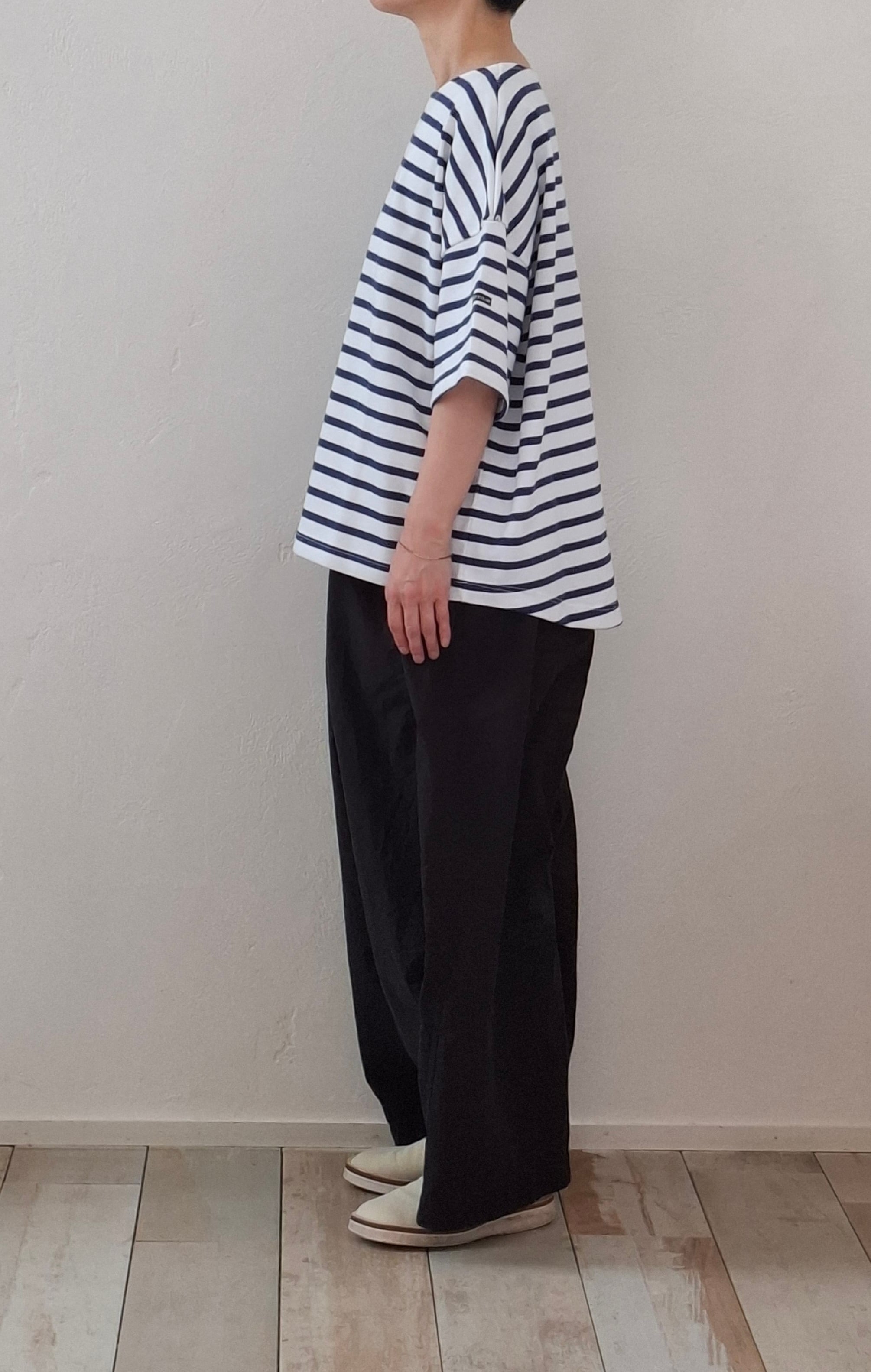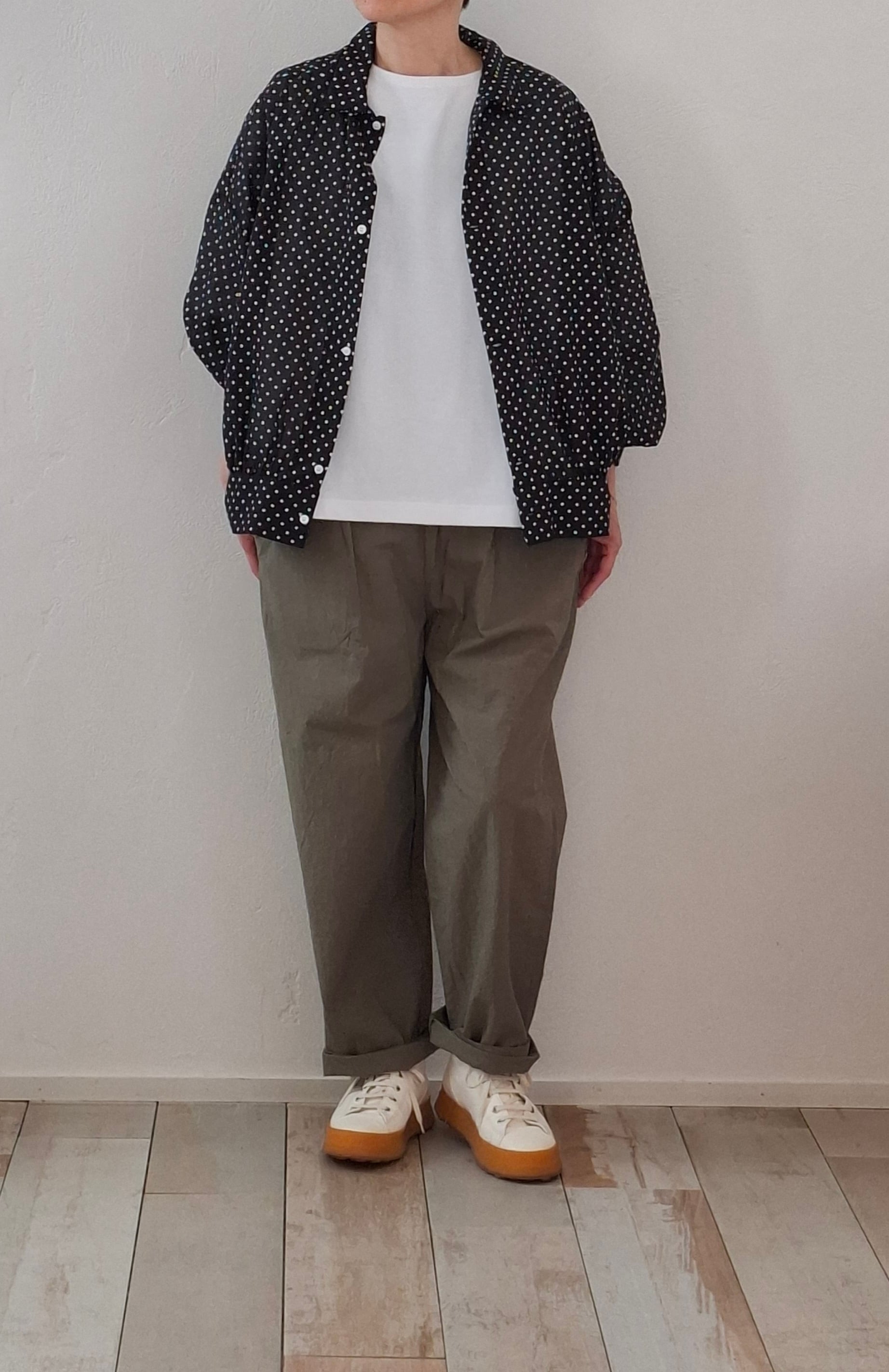 ボトムはワイドにも細身にも合わせやすいので、これからの季節にオススメの一枚です。
