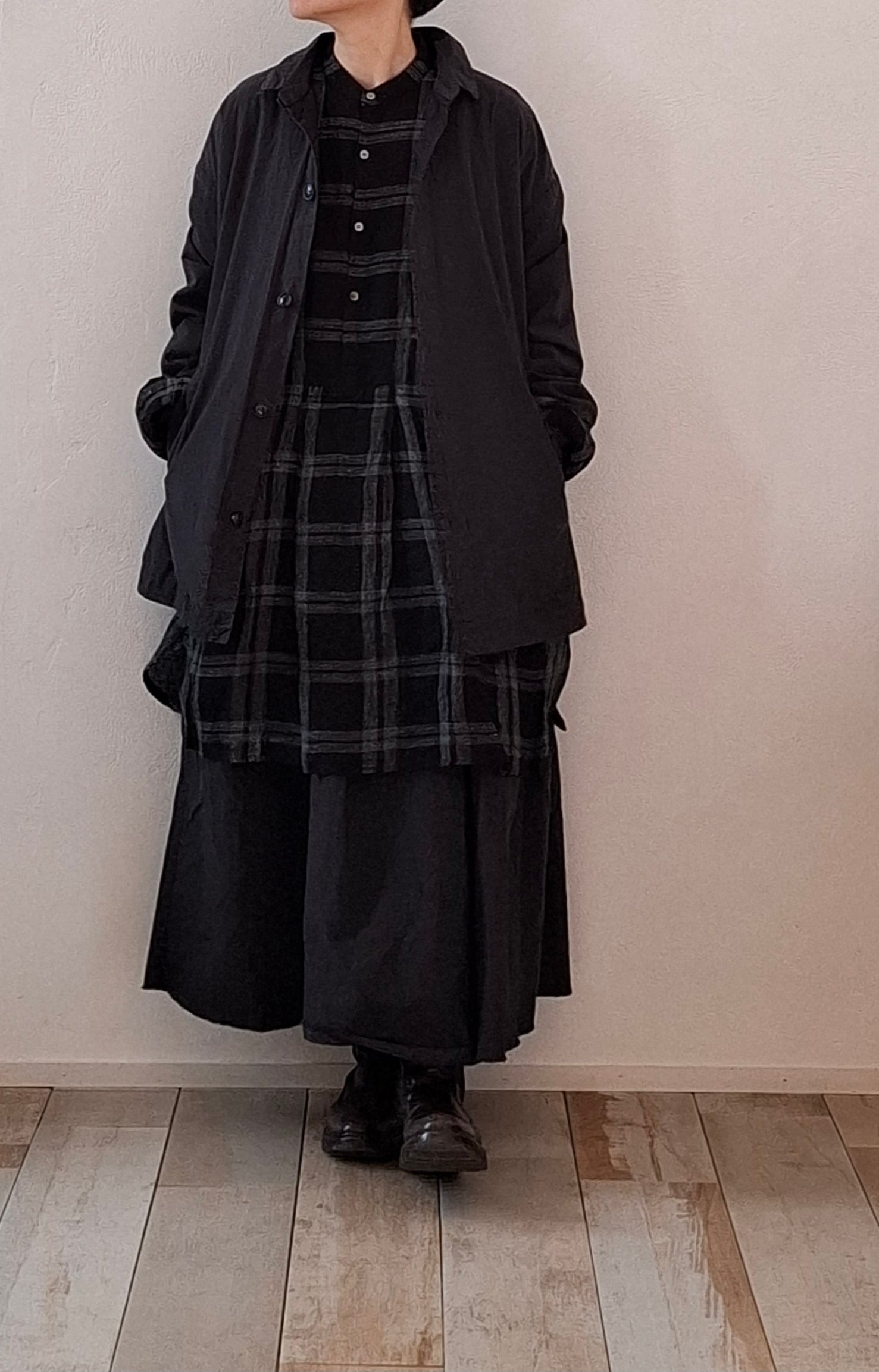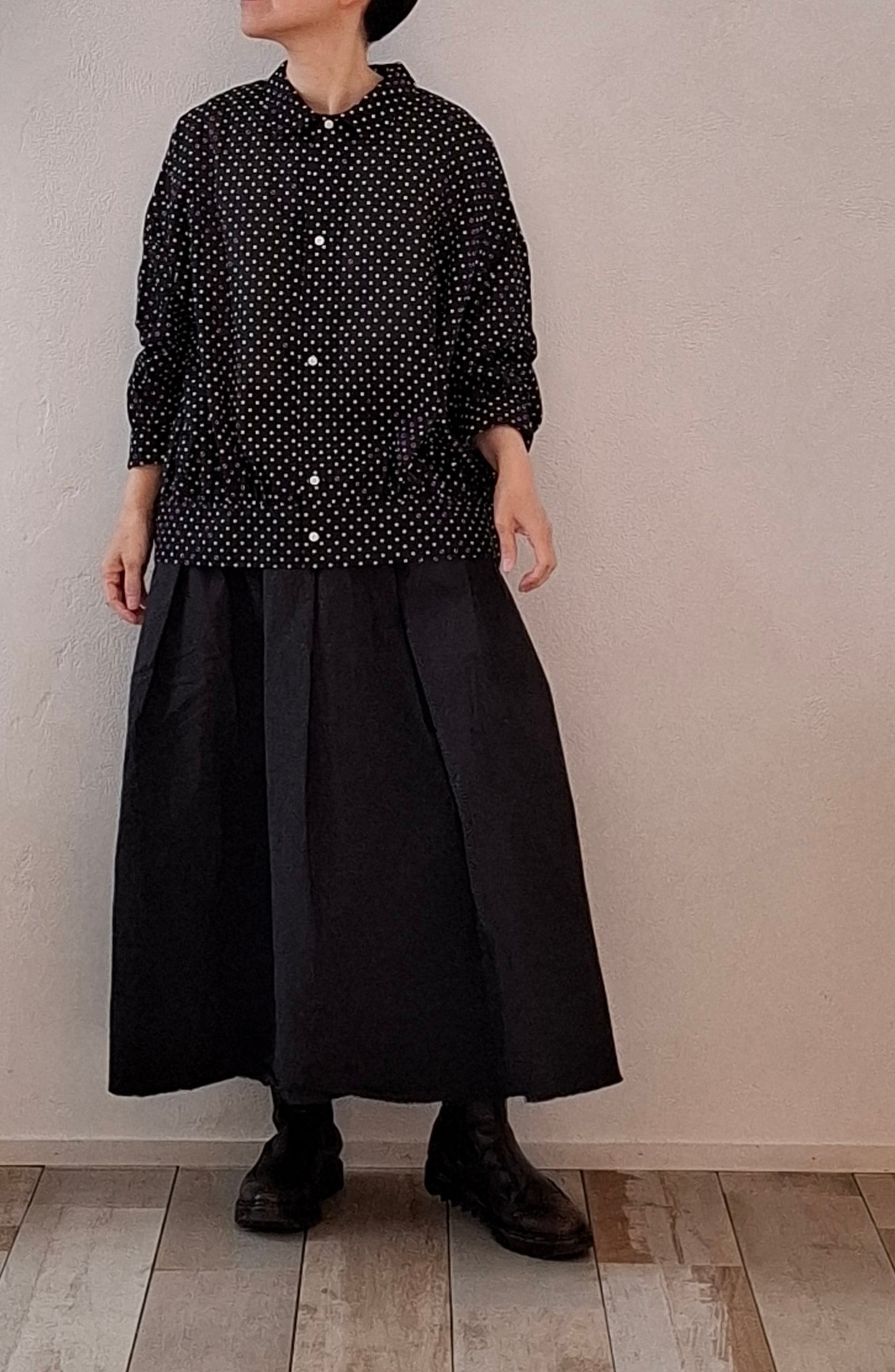 透け感なく、季節問わず楽しめる1着です。