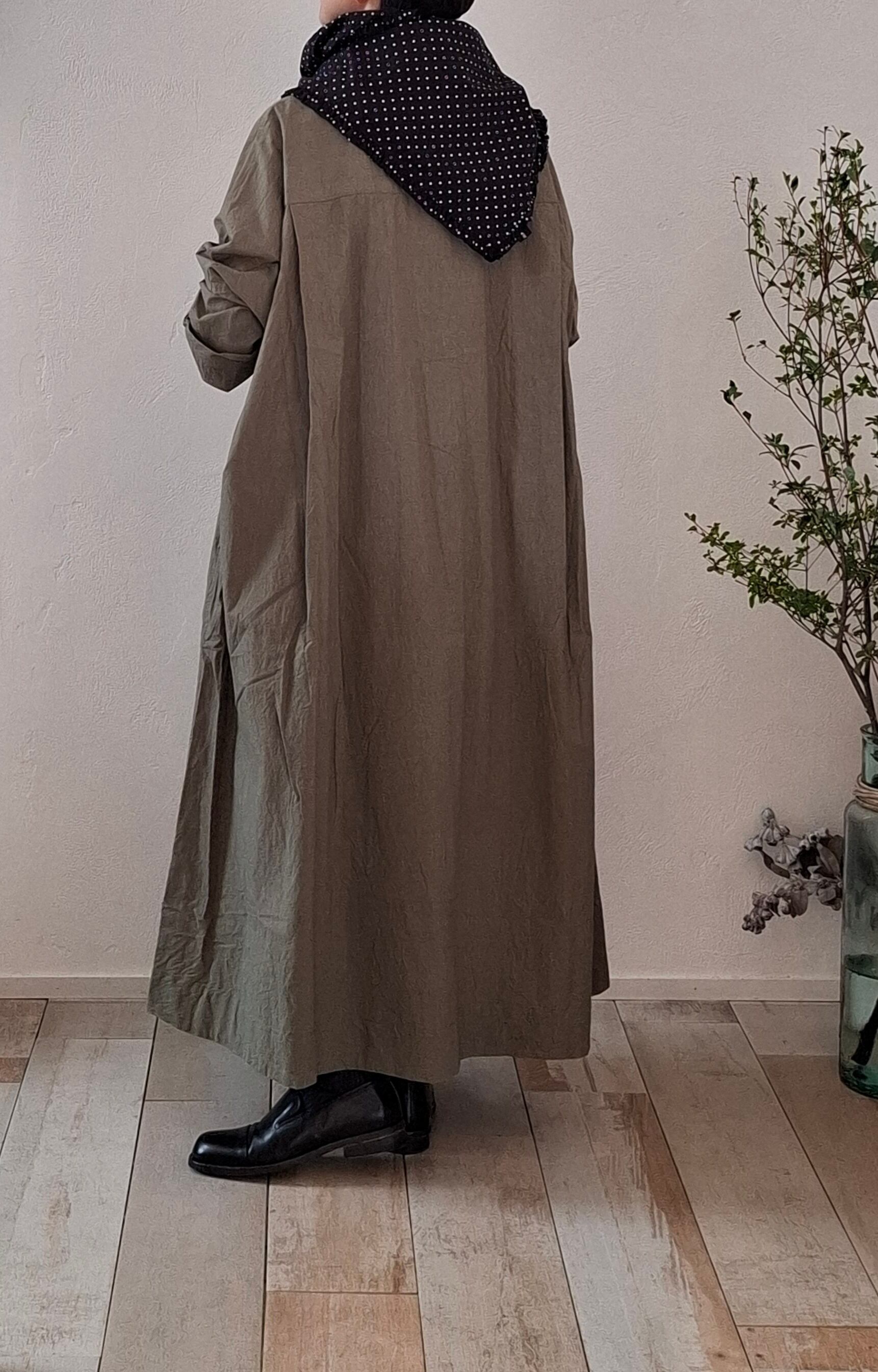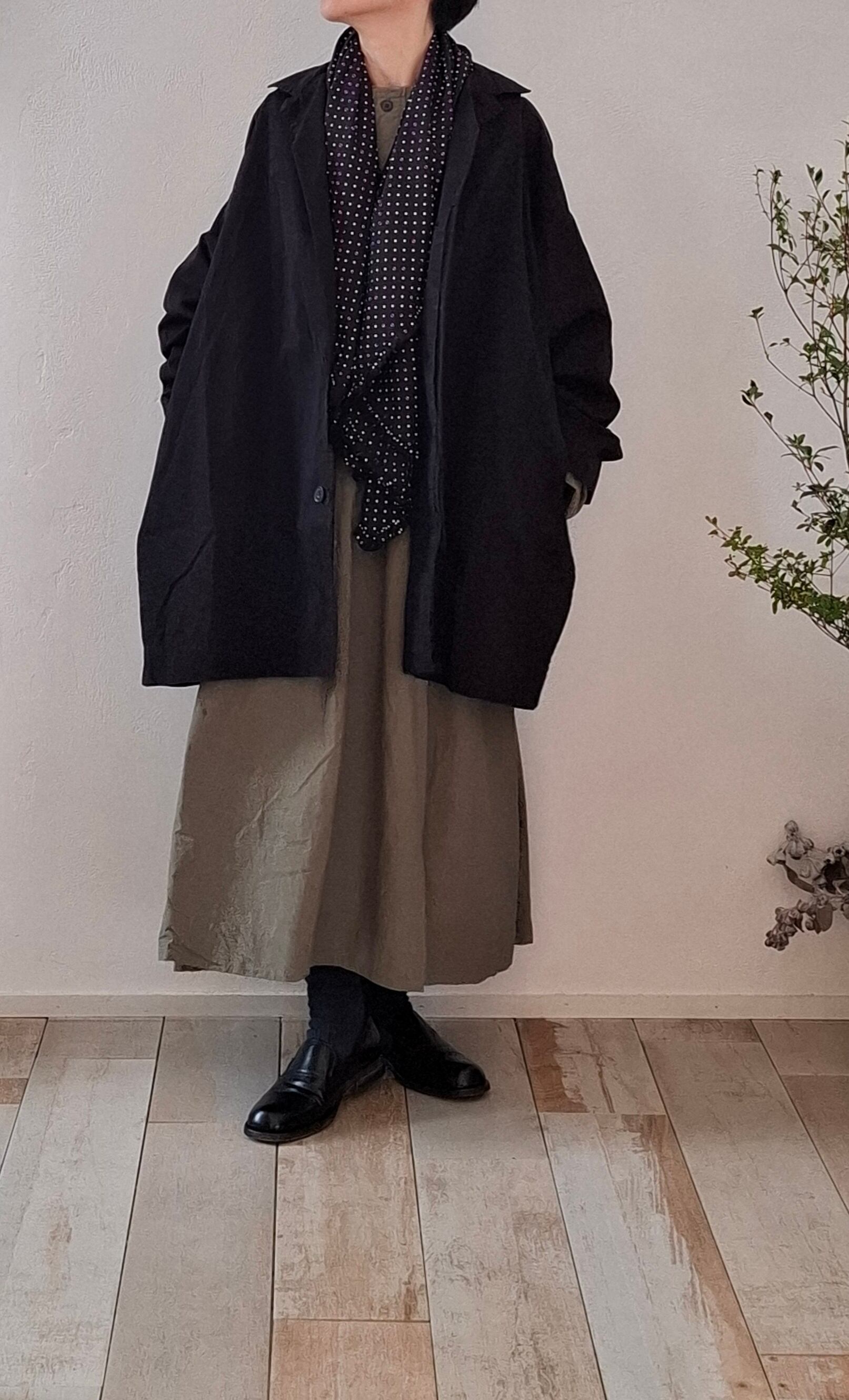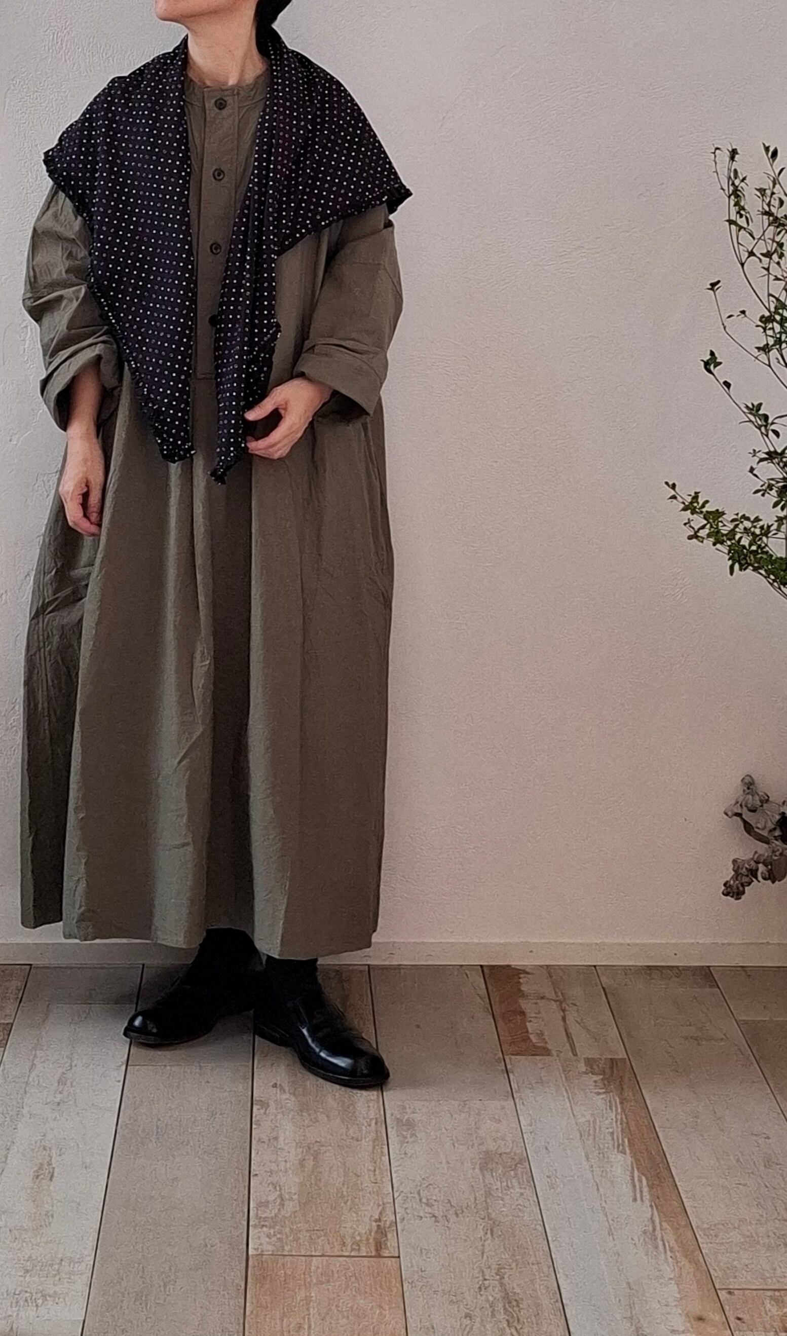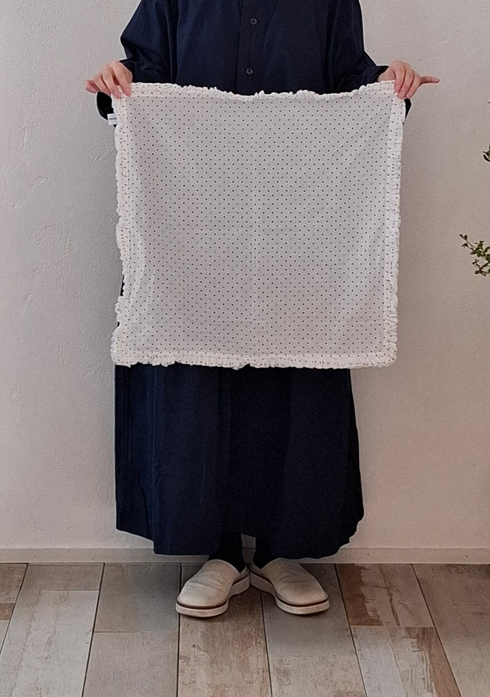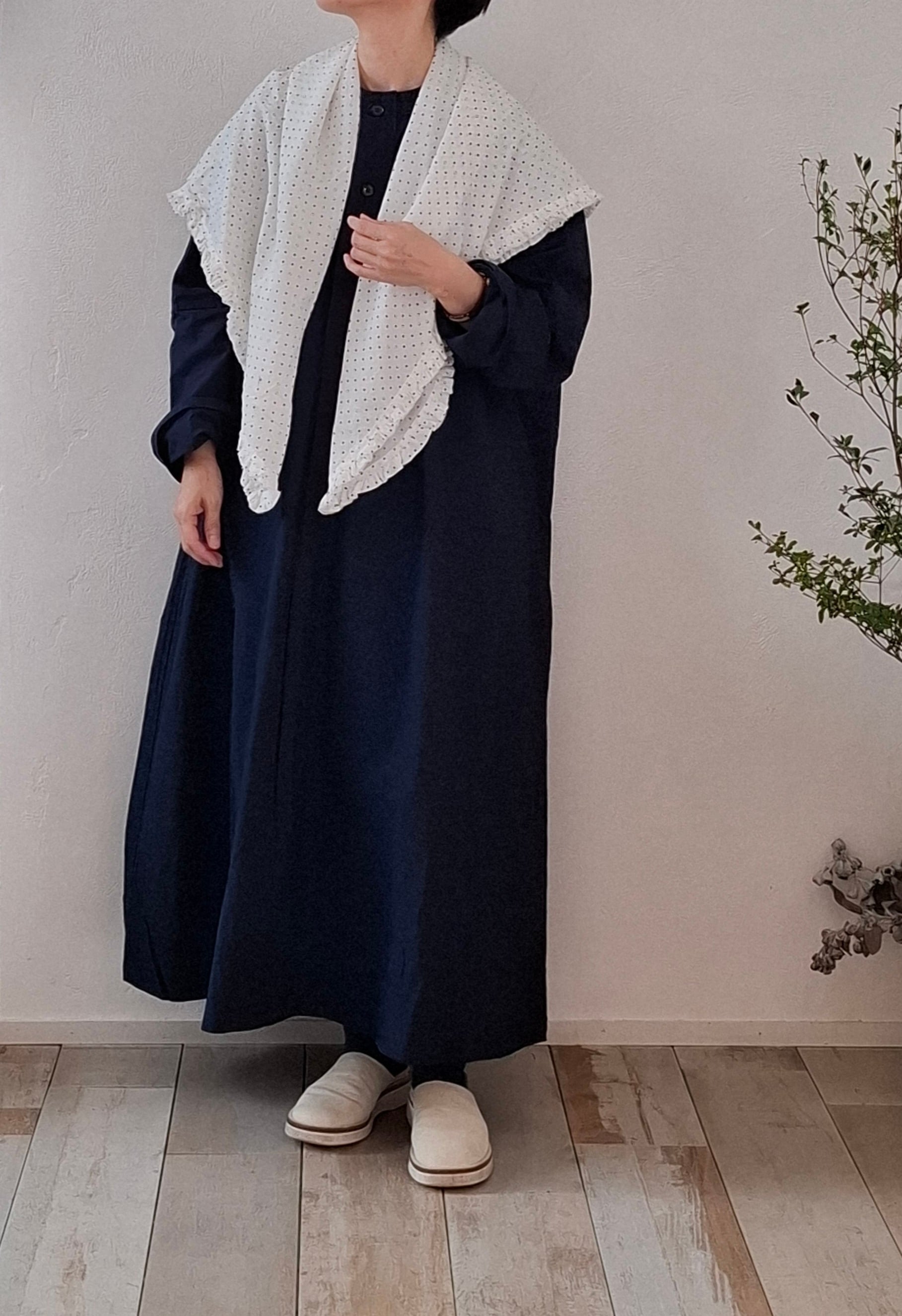 コーディネートに遊び心をプラスする細かなドット柄生地を使用したストール。