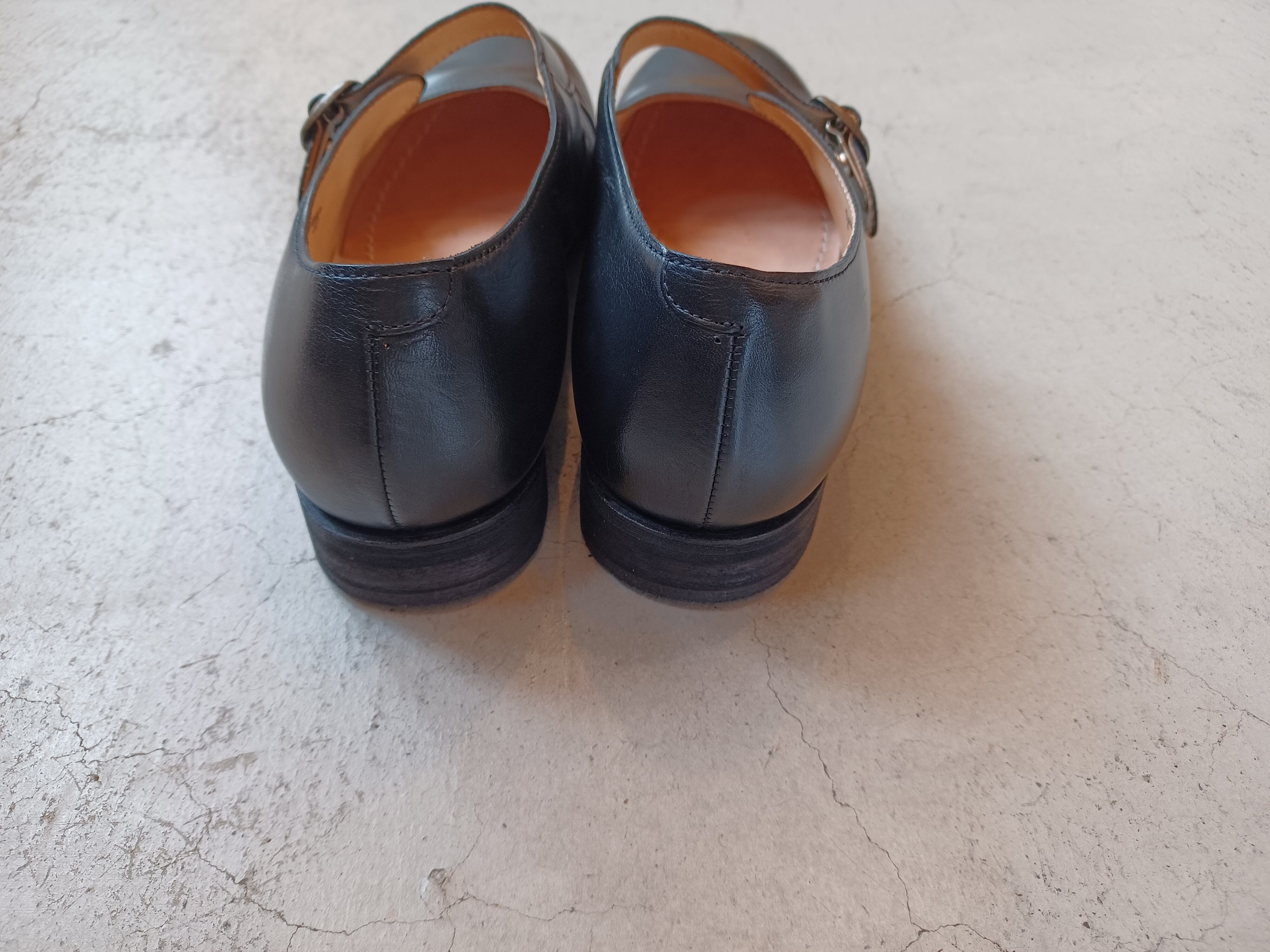 バッファローレザーを使用したワンストラップシューズ。
