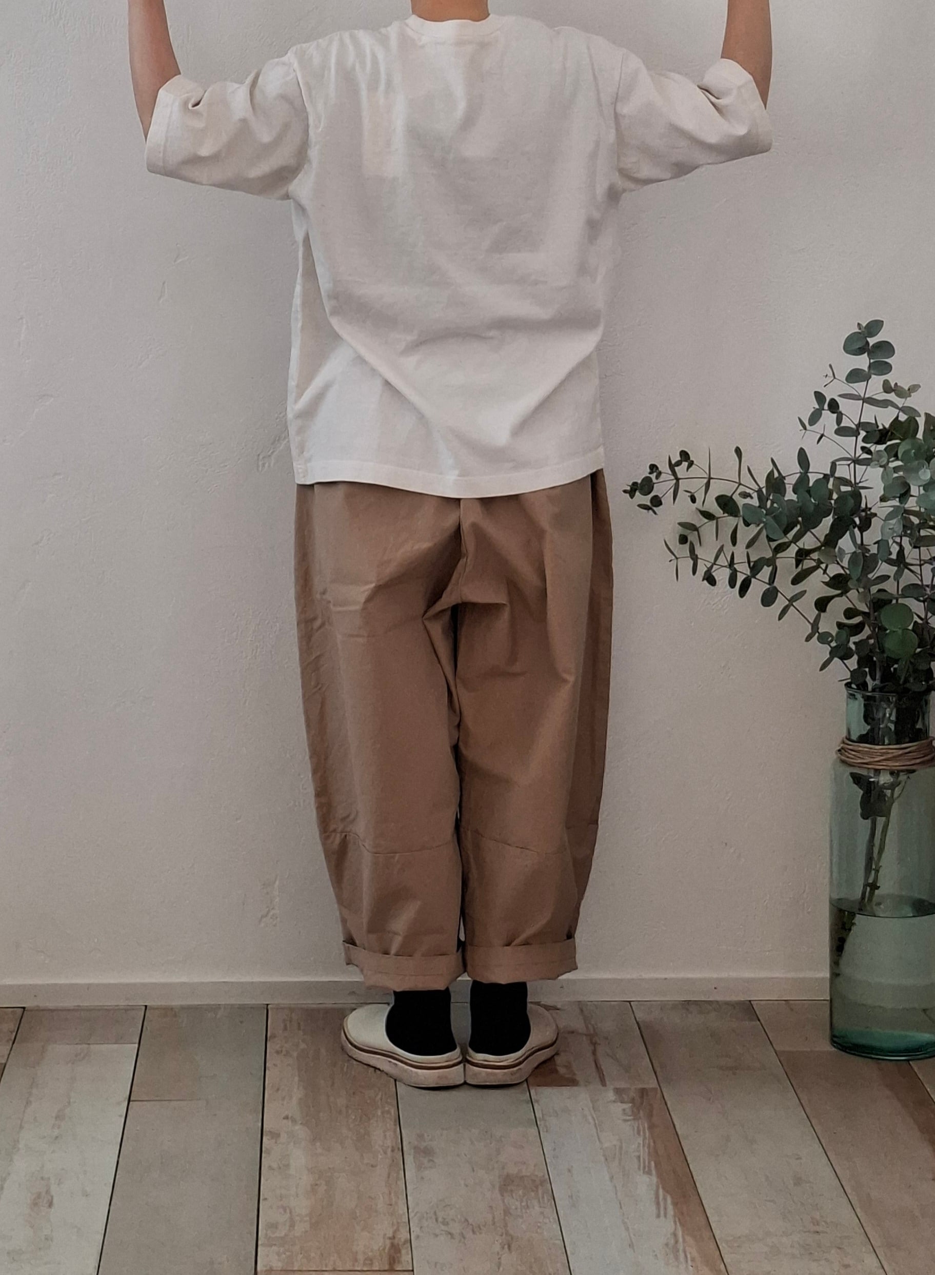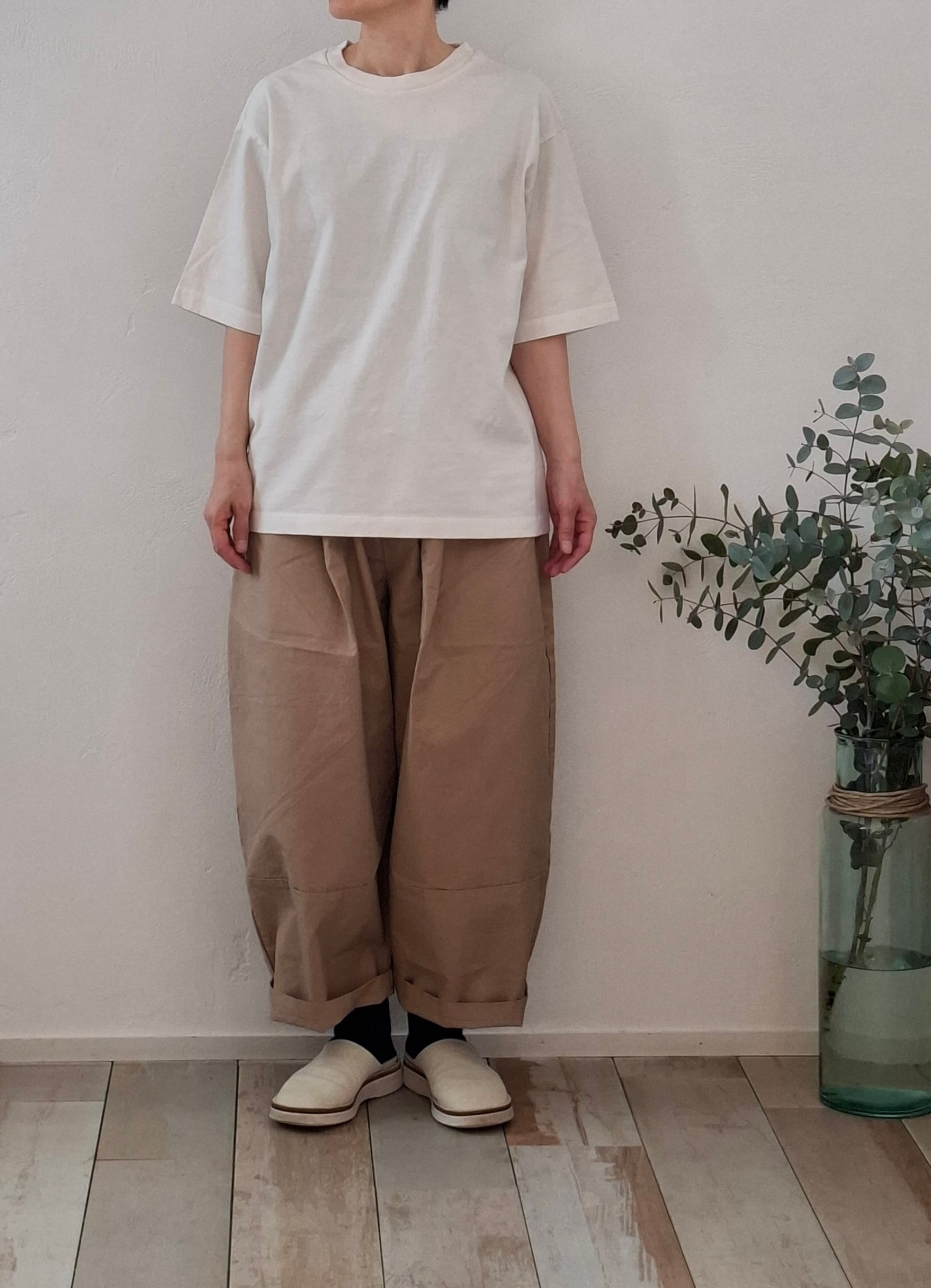 衿ぐりとAHにフライスを使用し、シンプルなデザインながらデイリーに着用いただけるよう