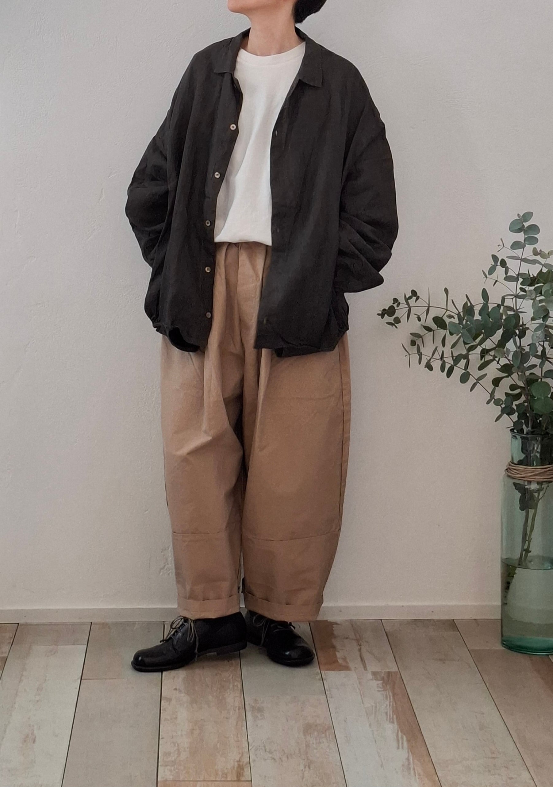 平らで伸縮性のある17/1BD天竺を顔料染めし仕上げています。