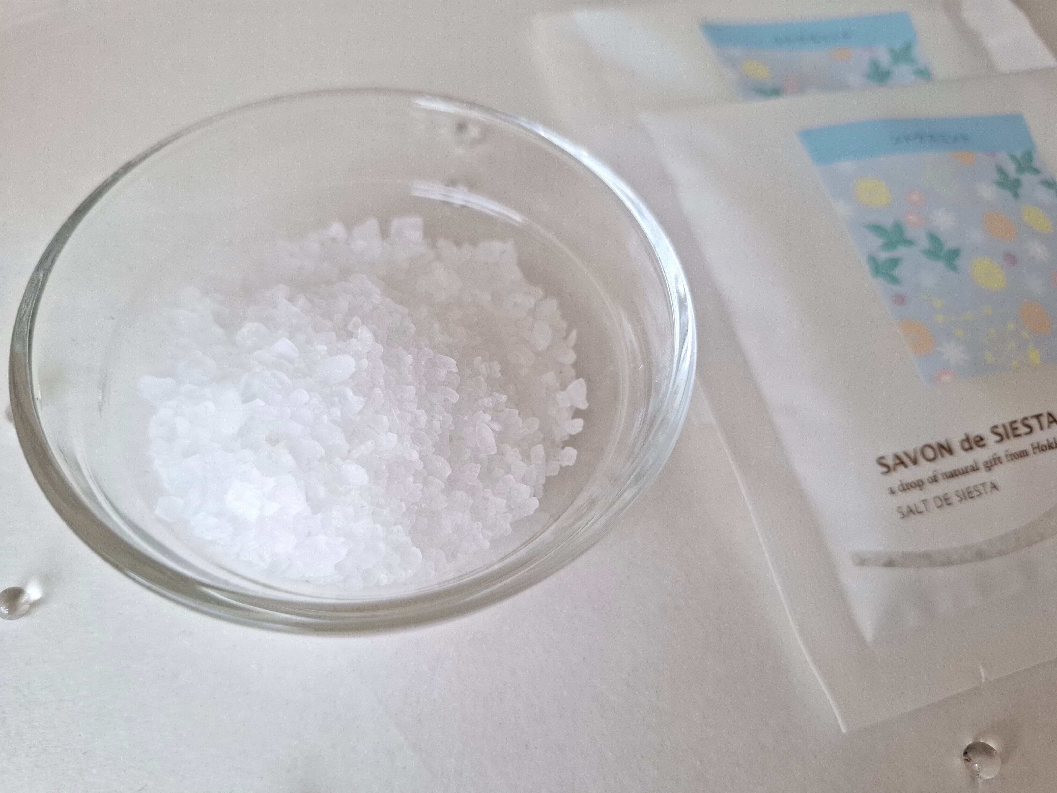 死海の塩と海塩をブレンドしたシエスタのバスソルト。