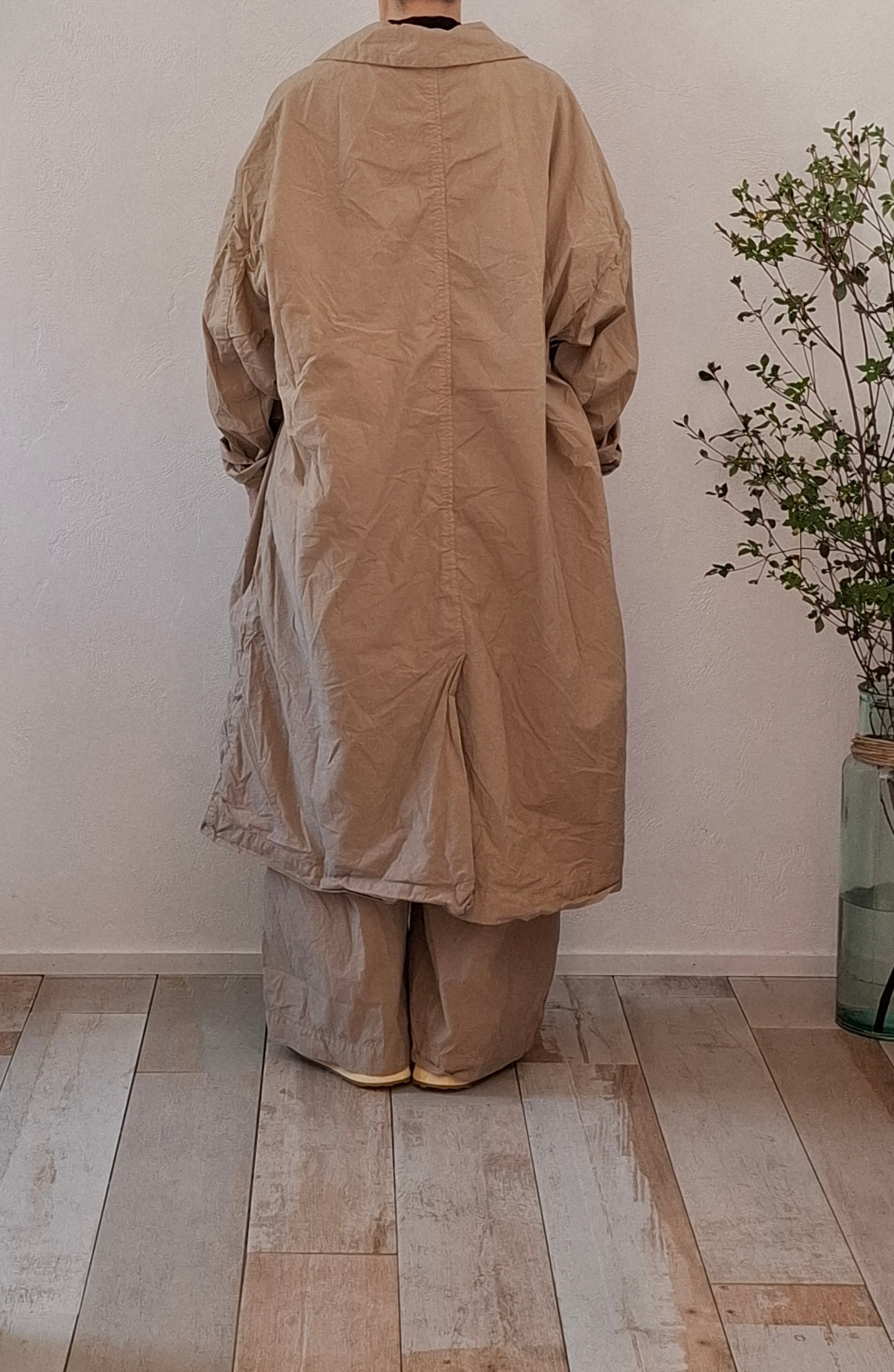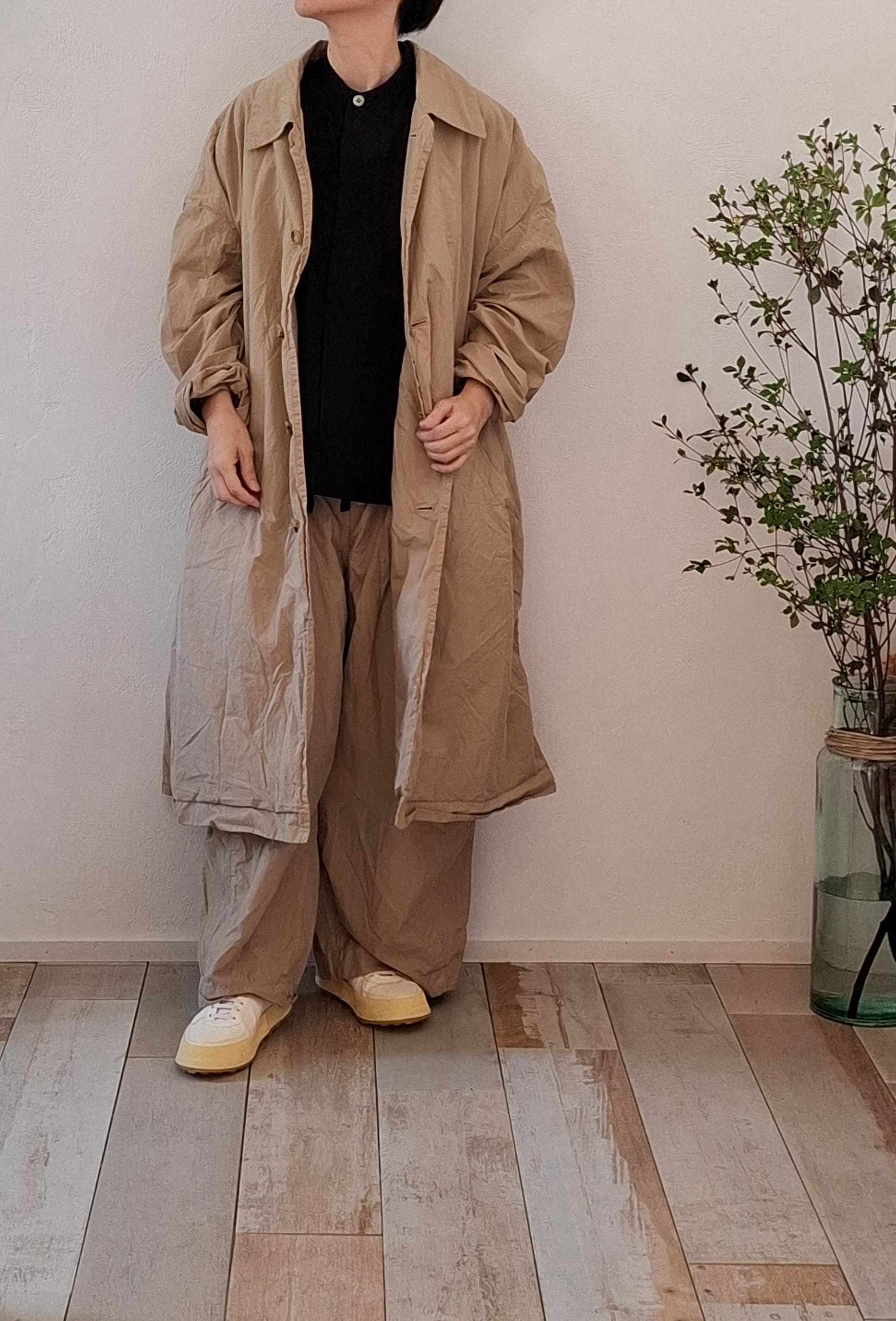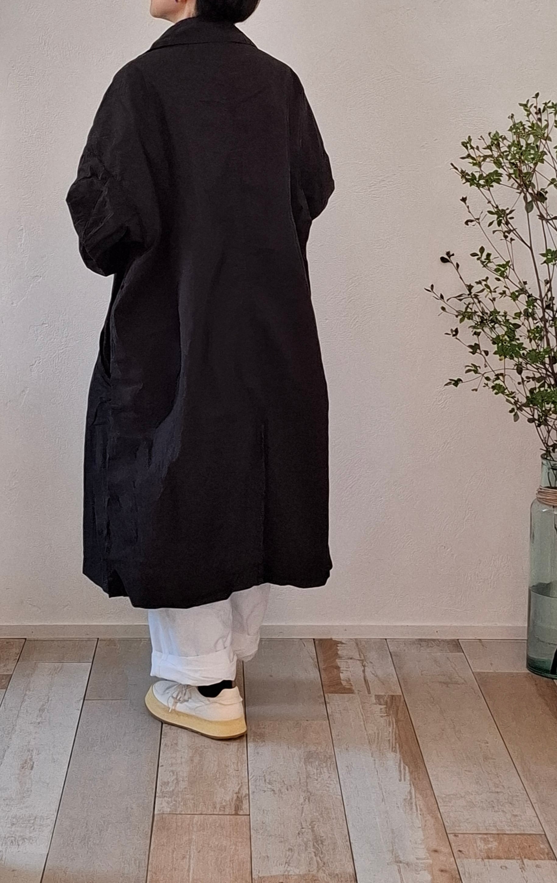 い風合いが特徴です。ゆったりとしていて軽い着心地のコートです。
