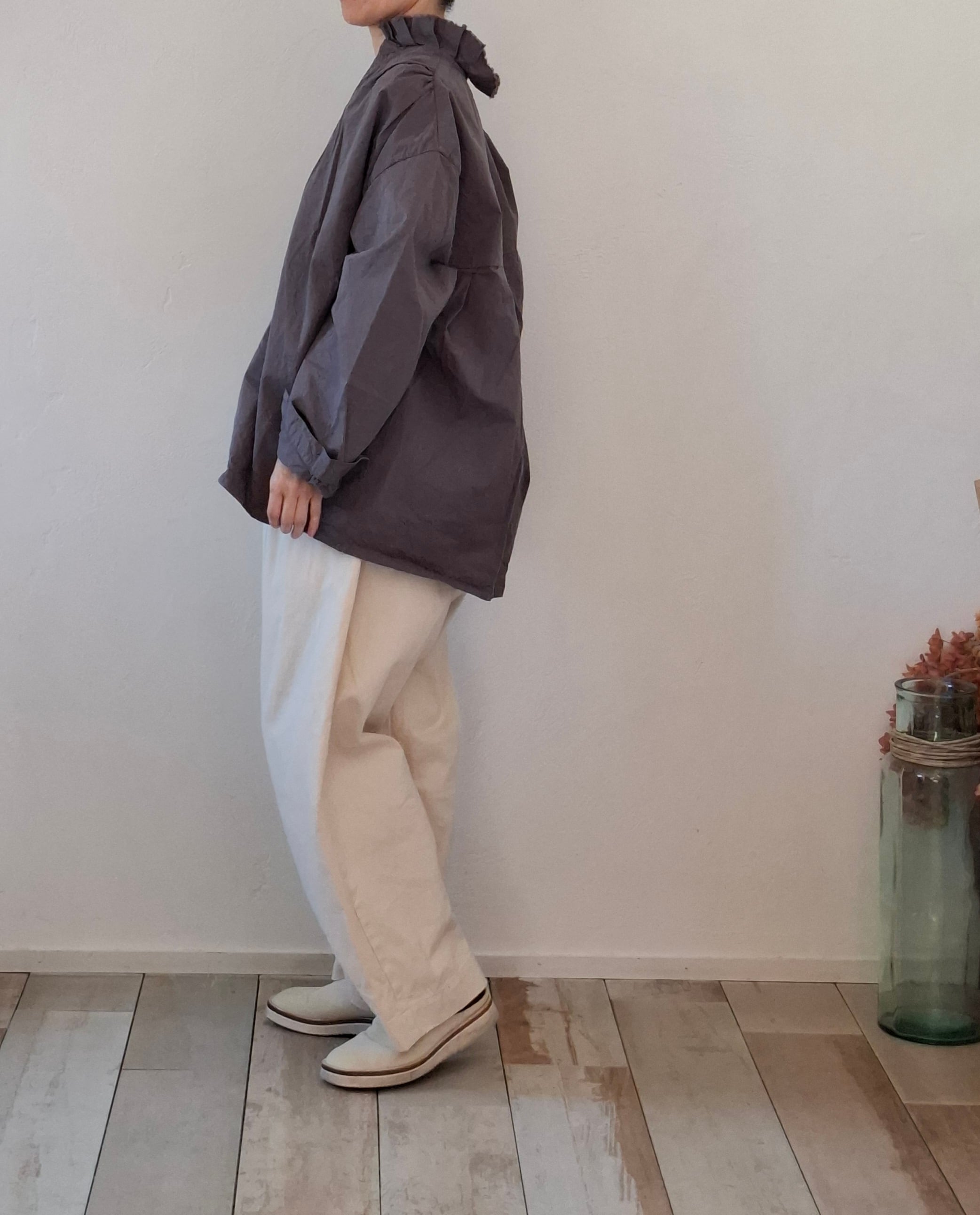 製品染めを行い洗いざらしの雰囲気に仕上げました。