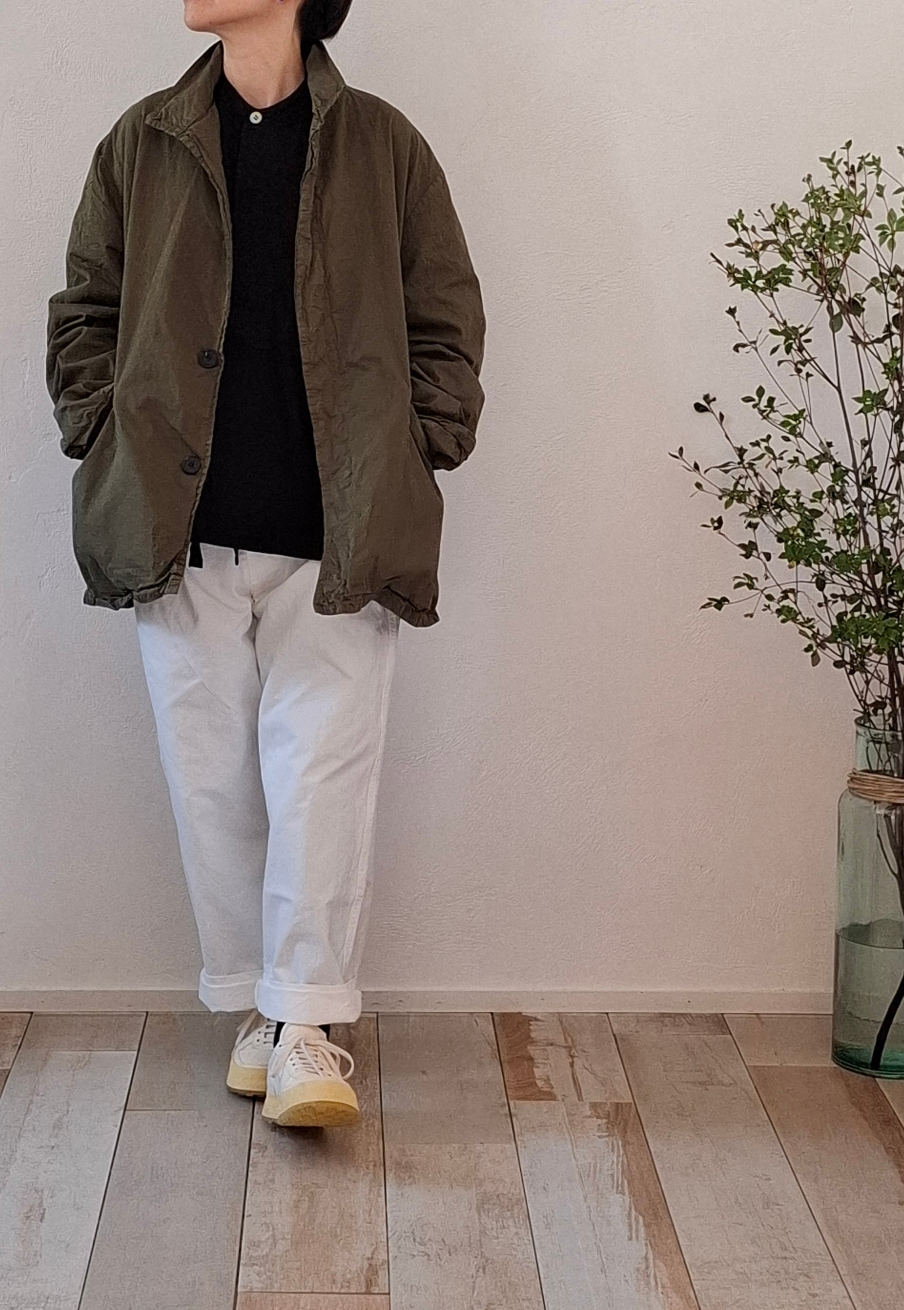 コットンの厚手ハイカウントツイル生地を使用したコート。