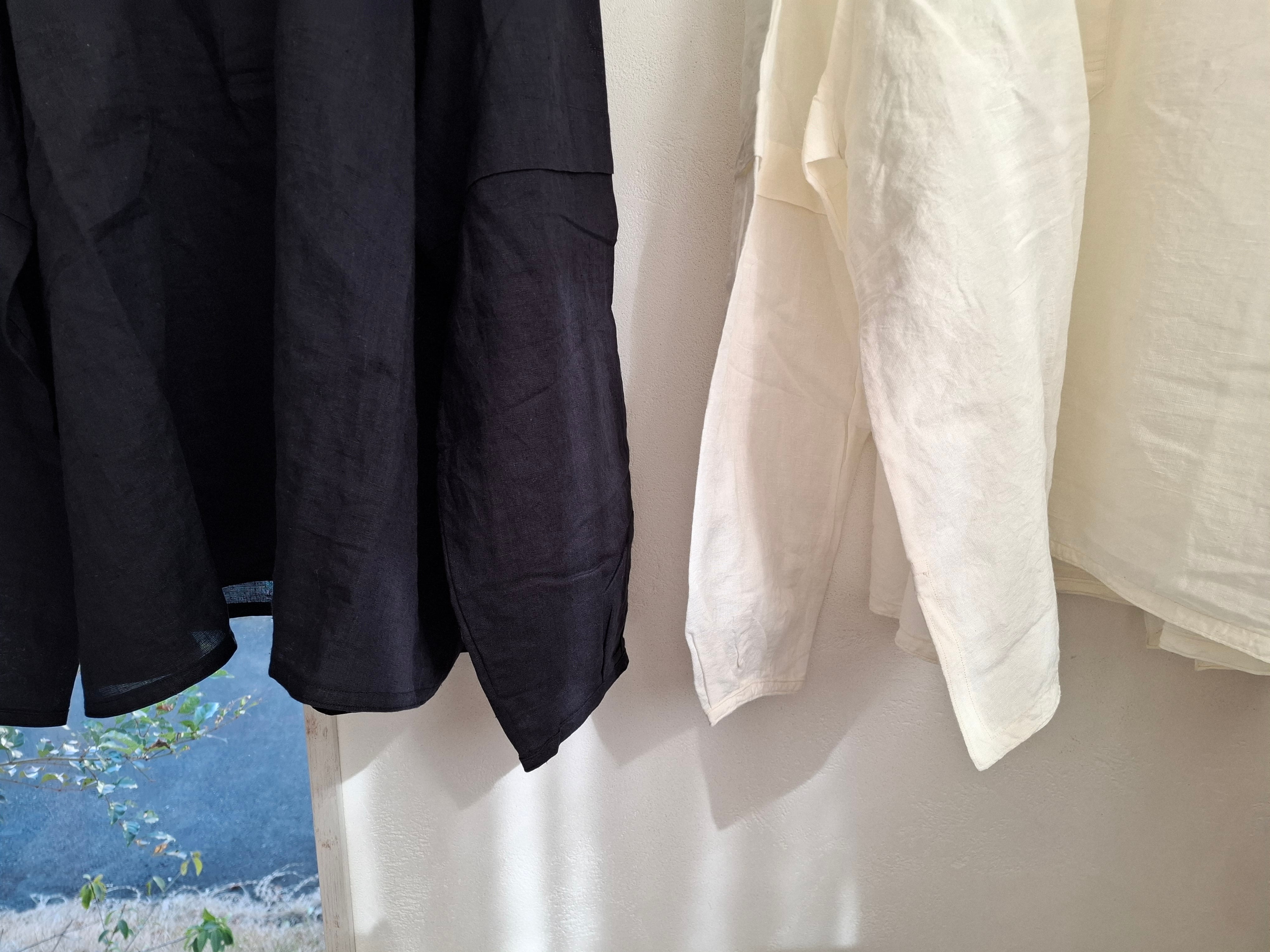 ドライタッチなコットンリネン素材を使用したシャツ。